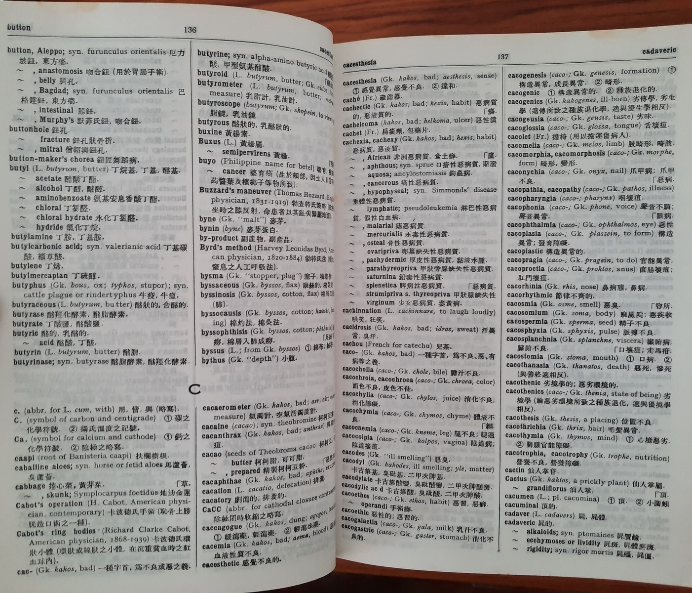 (1) นอกจากศัพท์ทางการแพทย์แล้ว ยังได้คัดเลือกศัพท์ที่เกี่ยวข้องจากสาขาอื่น ๆ เช่น ชีววิทยา พฤกษศาสตร์ สัตววิทยา ฟิสิกส์ และเคมี มารวมไว้ด้วย โดยรวบรวมคำศัพท์ทั้งหมดประมาณ 96,000 รายการ ซึ่งถือว่าเป็นพจนานุกรมที่มีการรวบรวมคำศัพท์อย่างครบถ้วนมากที่สุดเล่มหนึ่งในปัจจุบัน