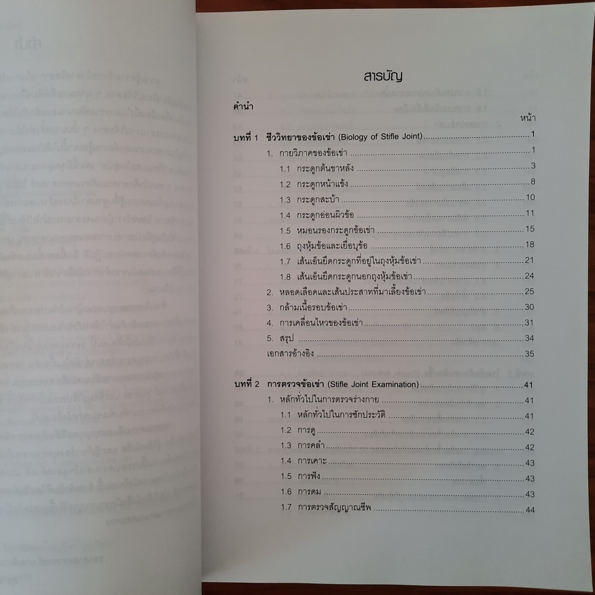 โดยเนื้อหาประกอบด้วย ชีววิทยาของข้อเข่า การตรวจข้อเข่า โรคข้ออักเสบติดเชื้อ โรคสะบ้าเคลื่อน การฉีกขาดของเอ็นไขว้หน้า การฉีกขาดของเอ็นไขว้หลัง การบาดเจ็บของหมอนรองกระดูกข้อเข่า การบาดเจ็บของกระดูกอ่อนผิวข้อ โรคข้อเสื่อม ยาปกป้องกระดูกอ่อนผิวข้อ เเละกายภาพบำบัดทางออร์โทพีดิกส์