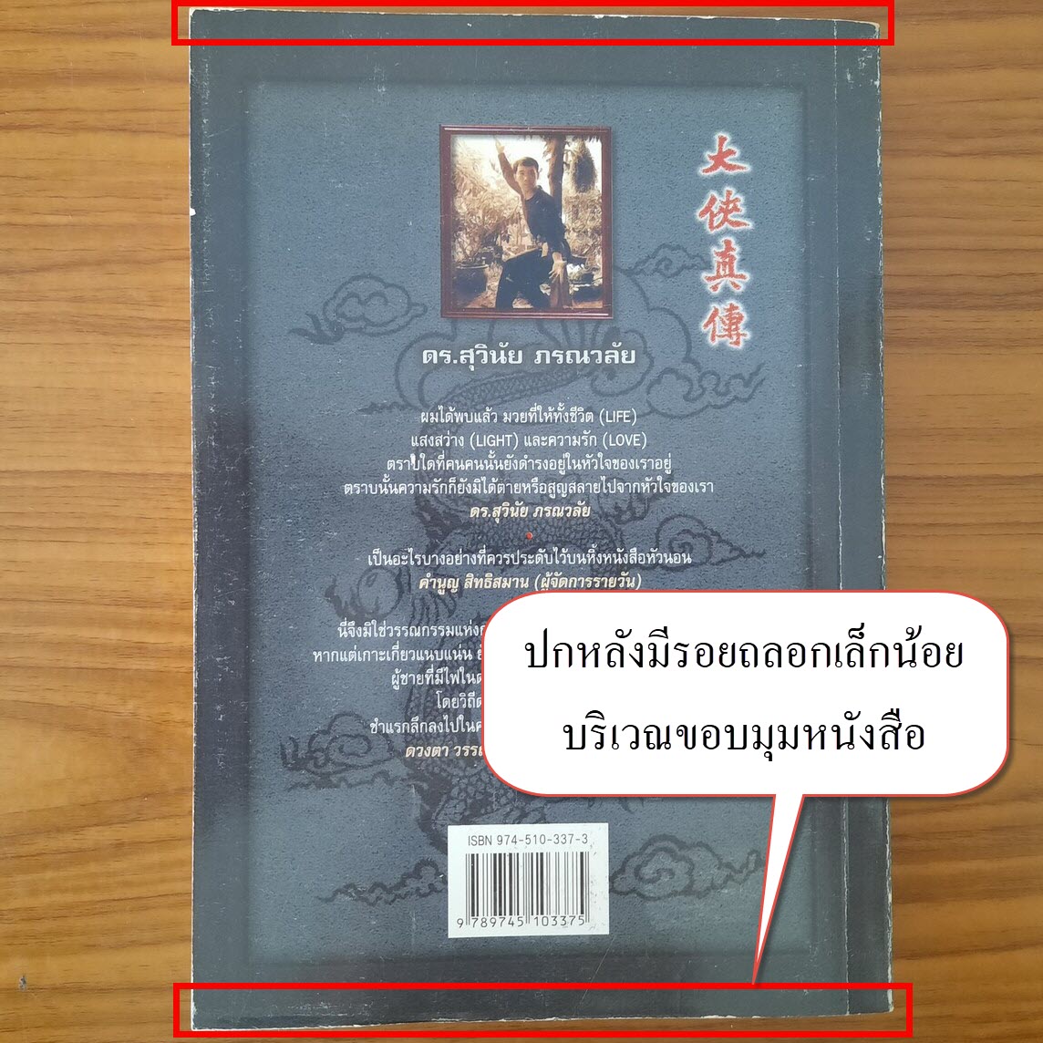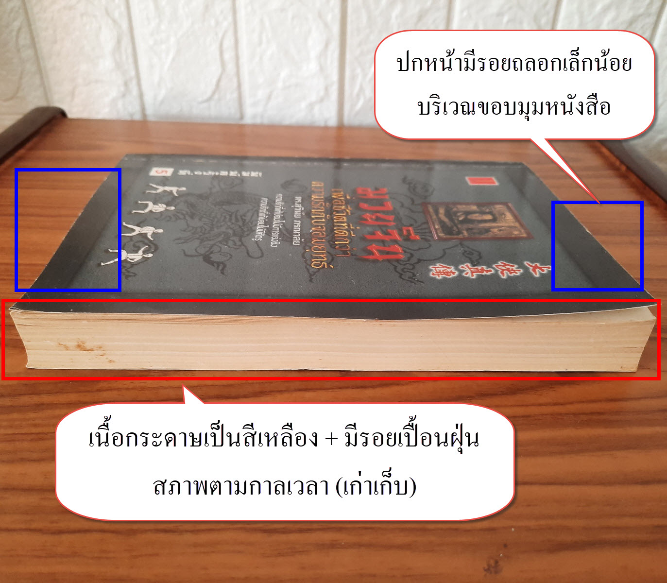 (2) ปกหน้า/ปกหลัง มีรอยถลอกเล็กน้อยบริเวณขอบมุมหนังสือ รายละเอียดตามภาพ