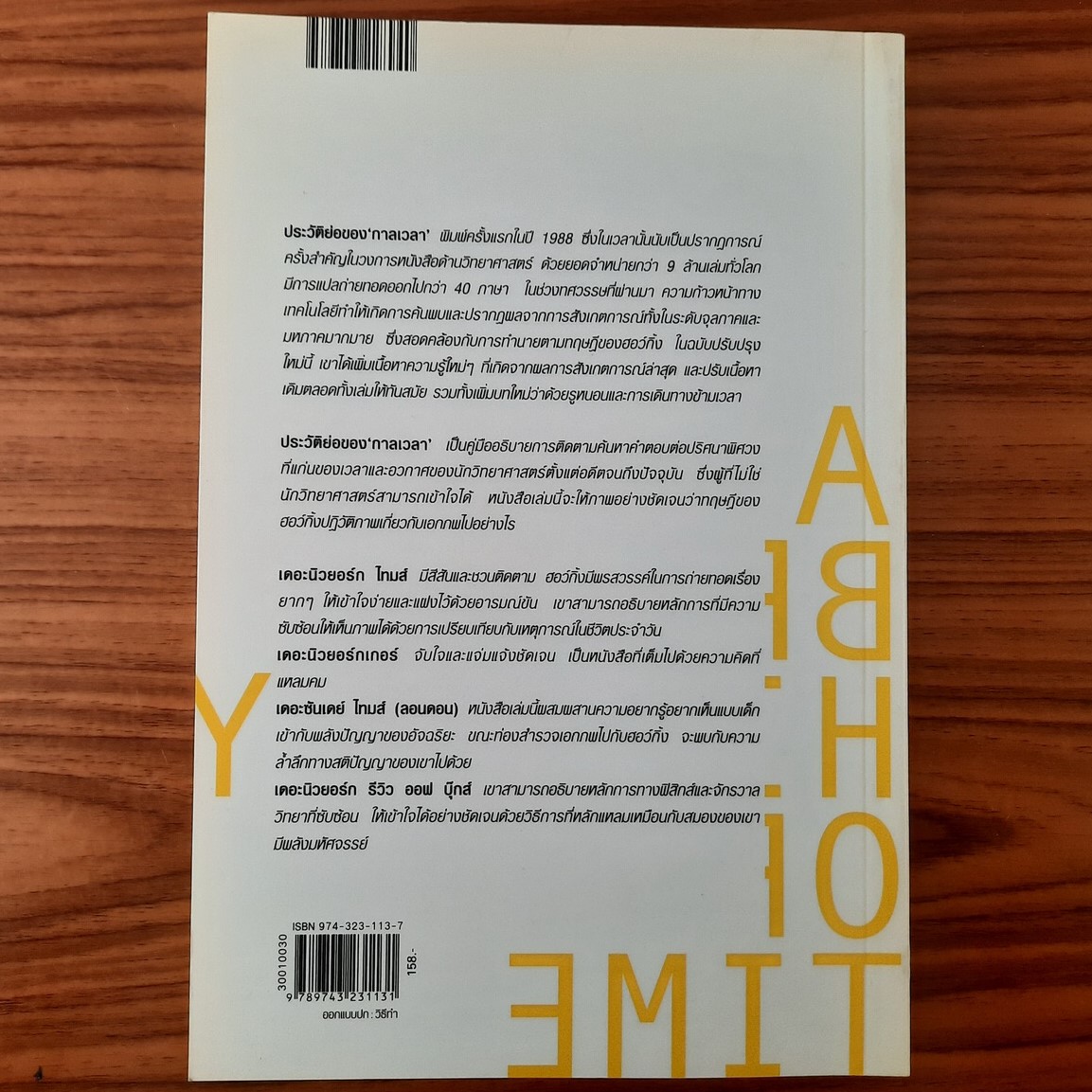 ประวัติย่อของ 'กาลเวลา' พิมพ์ครั้งแรกในปี 1988 ซึ่งในเวลานั้นนับเป็นปรากฏการณ์ครั้งสำคัญในวงการหนังสือด้านวิทยาศาสตร์ ด้วยยอดจําหน่ายกว่า 9 ล้านเล่มทั่วโลก มีการแปลถ่ายทอดออกไปกว่า 40 ภาษา