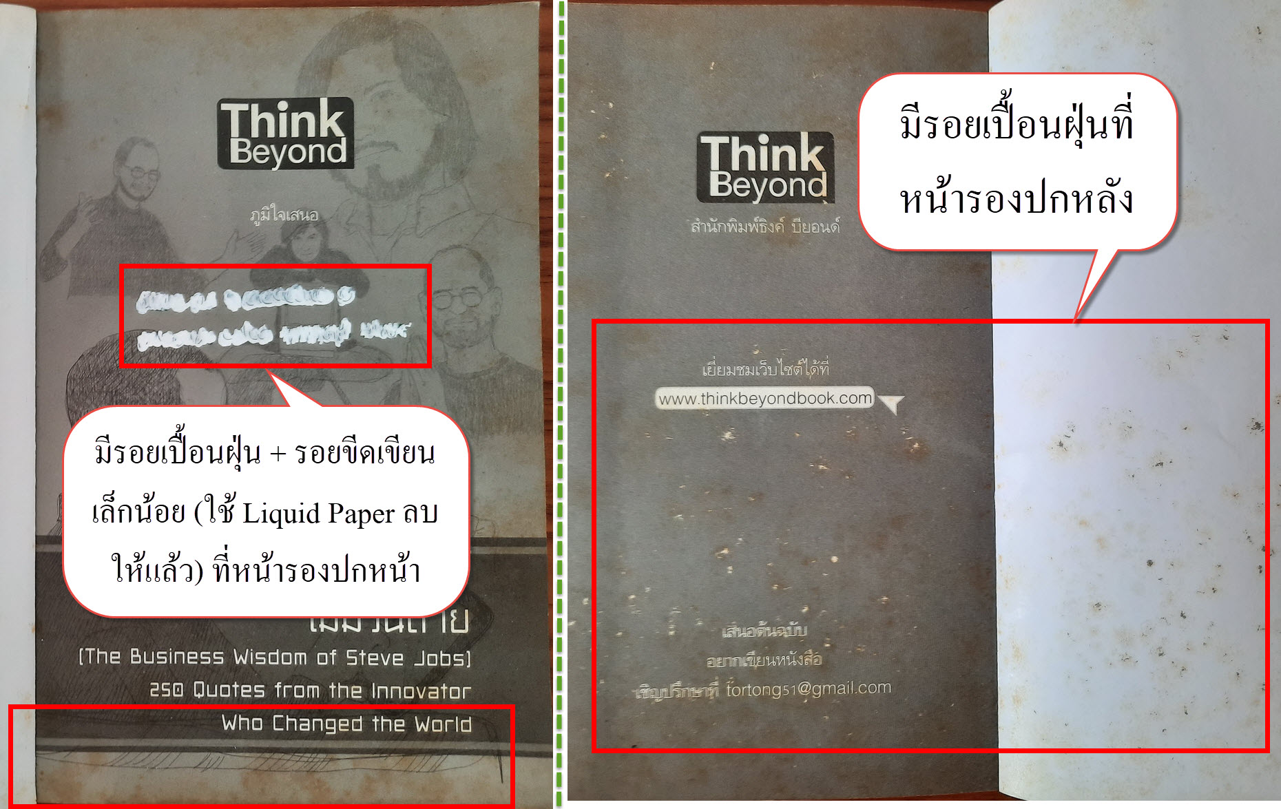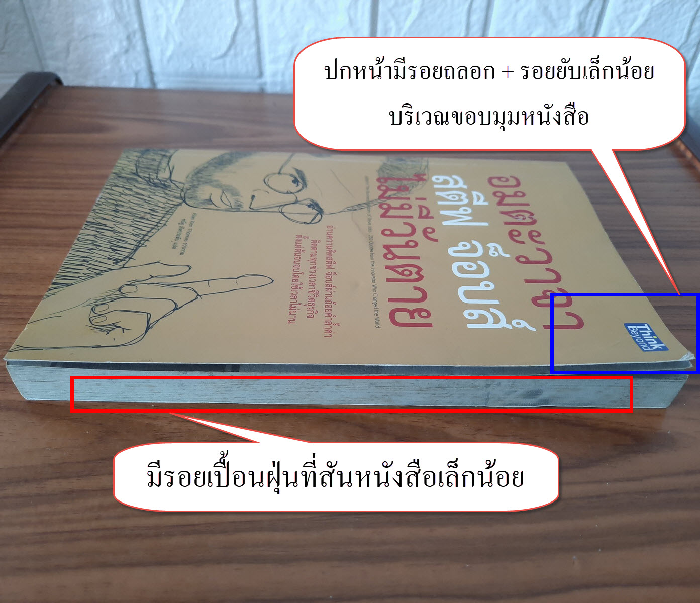 (2) ปกหน้า/ปกหลัง มีรอยยับ + รอยถลอกเล็กน้อย บริเวณขอบมุมหนังสือ รายละเอียดตามภาพ