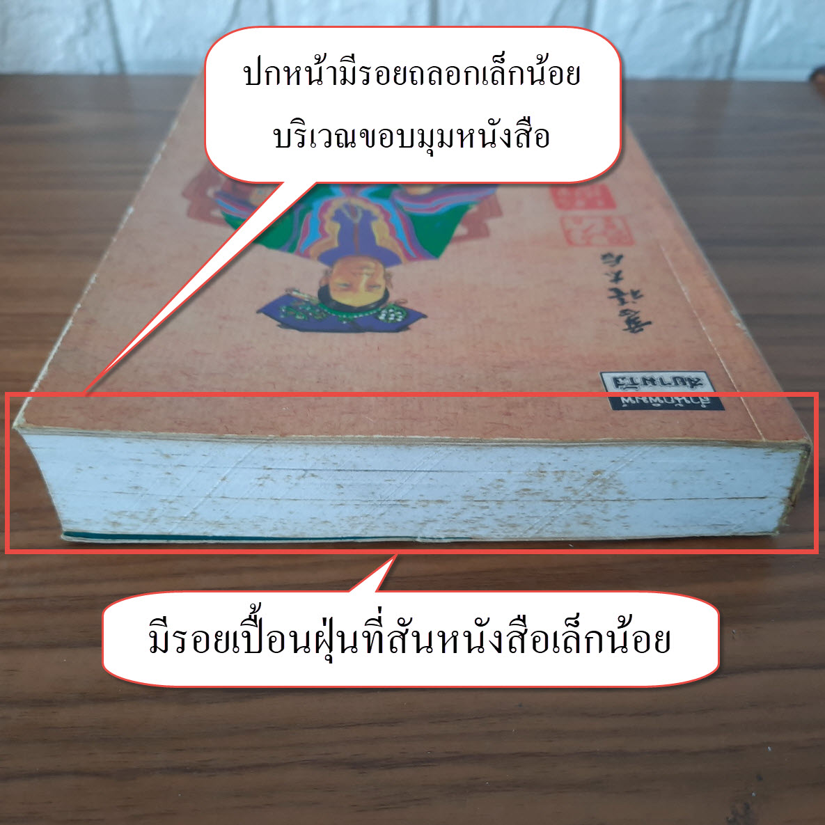 (2) ปกหน้า/ปกหลัง มีรอยถลอกเล็กน้อยบริเวณขอบมุมหนังสือ รายละเอียดตามภาพ