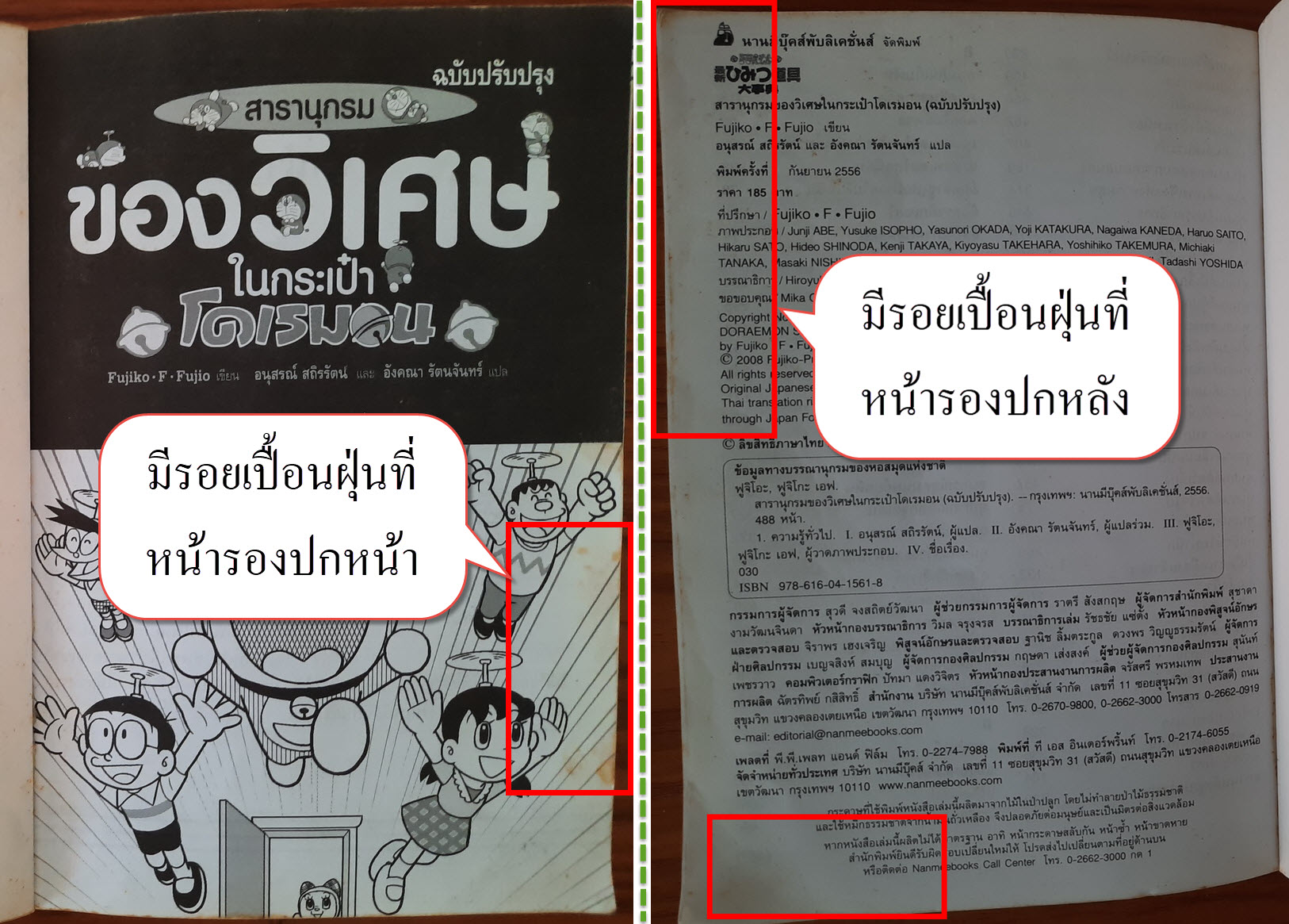 (2) ปกหน้า/ปกหลัง มีรอยยับ + รอยถลอก + รอยเปื้อนฝุ่นเล็กน้อย รายละเอียดตามภาพ