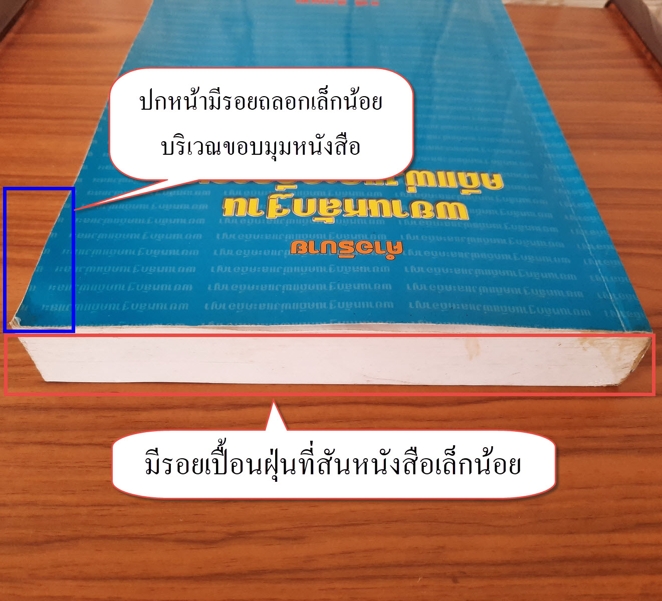 (2) ปกหน้า/ปกหลัง มีรอยถลอกเล็กน้อยบริเวณขอบมุมหนังสือ รายละเอียดตามภาพ
