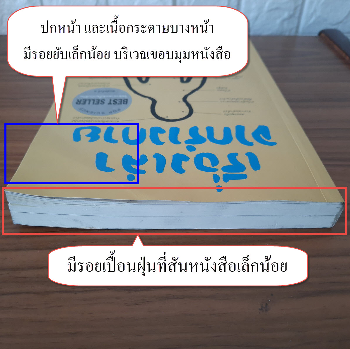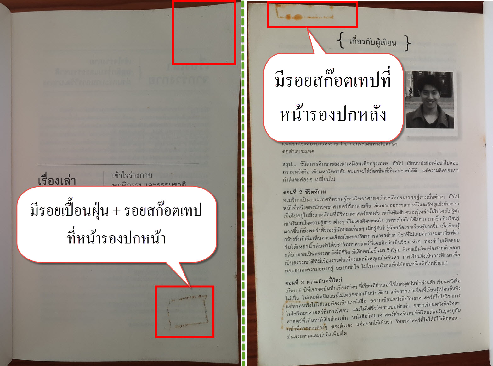 (2) ปกหน้า/ปกหลัง มีรอยสก๊อตเทป + รอยยับเล็กน้อยบริเวณขอบมุมหนังสือ รายละเอียดตามภาพ