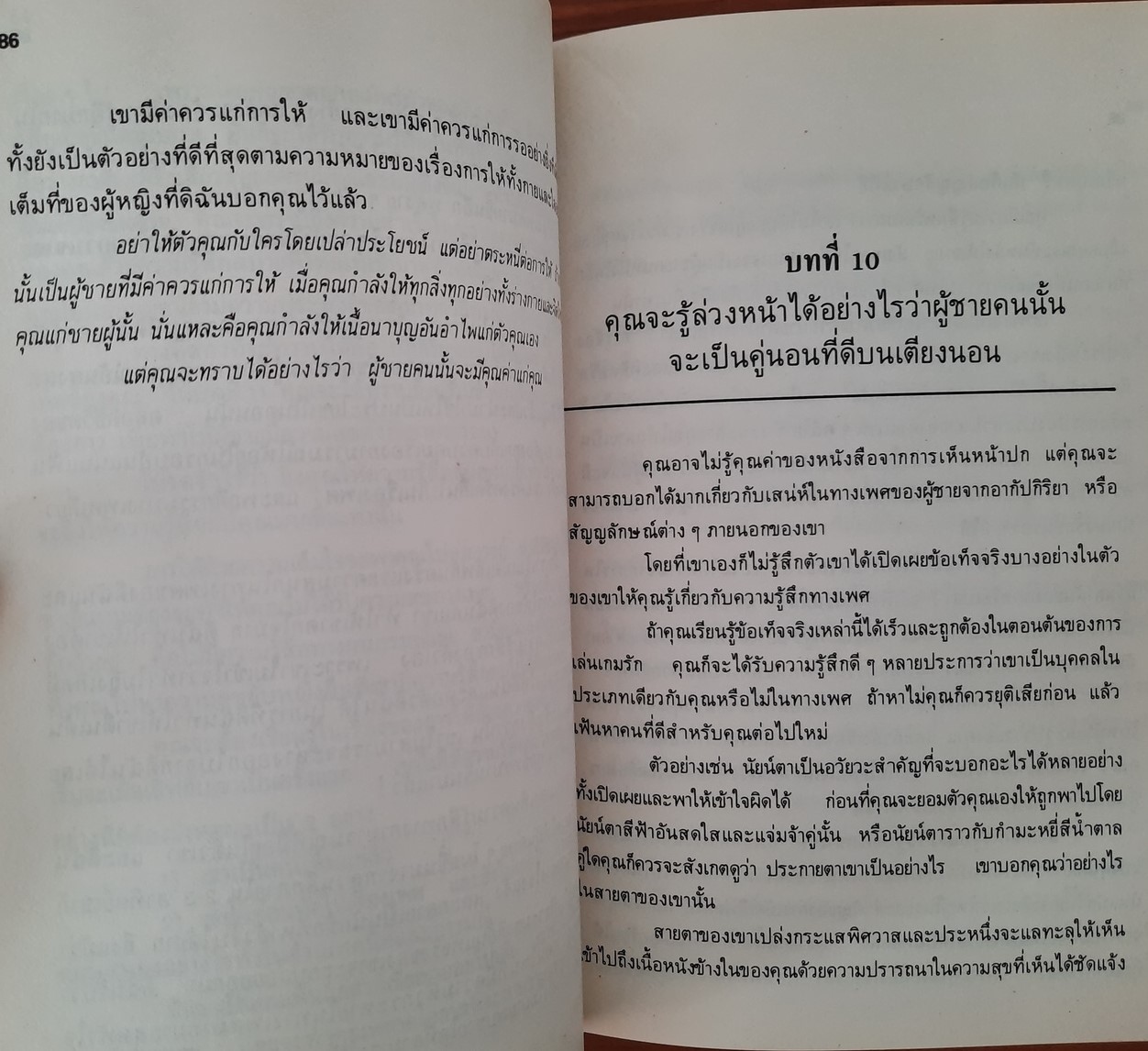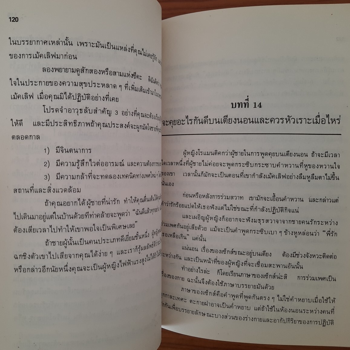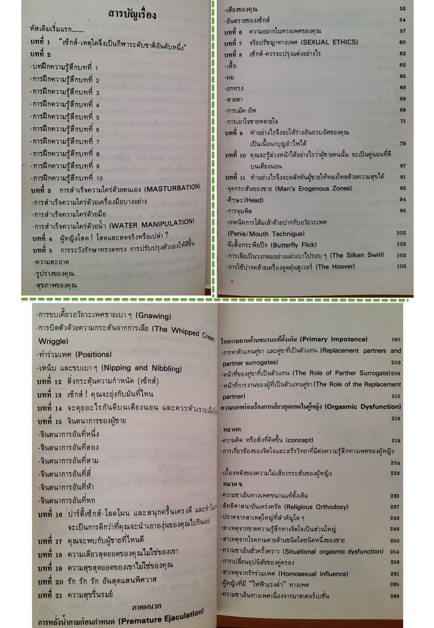 ไม่ว่าเธอเหล่านั้นจะมีรูปร่างพิกลพิการสักเพียงใด เช่น ขาโค้ง เข่า อ่อน, อกแฟบ, ตาเหล่ หรือหัวล้าน ถ้าได้เรียนรู้เรื่องเพศที่เธอสอนให้อย่างเปิดเผยและหมดเปลือกนี้แล้ว ก็จะเป็นที่รักเสน่หาของชายไม่เสื่อมคลายและจะประสบความสำเร็จในชีวิตกามารมณ์ด้วยความสุขประดุจอยู่ในสรวงสวรรค์ตลอดเวลา