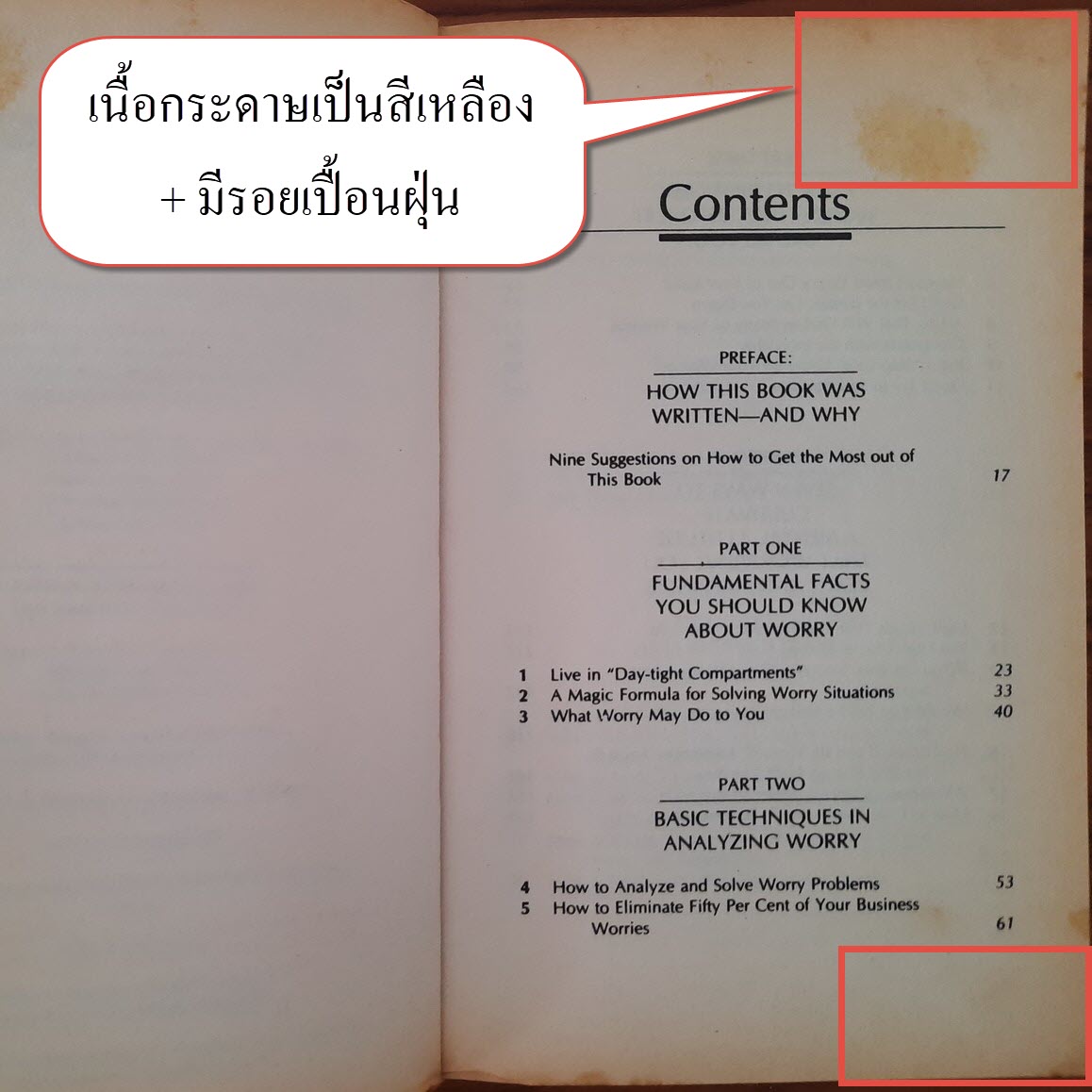 (1) หนังสือมือสองสภาพตามกาลเวลา (เก่าเก็บ) เนื้อกระดาษเป็นสีเหลือง + มีรอยเปื้อนฝุ่น , มีรอยสก๊อตเทปที่หน้ารองปกหน้า/หลัง ไม่มีรอยขีดเขียนใดๆ รายละเอียดตามภาพ ใช้งานได้ปกติดีมาก