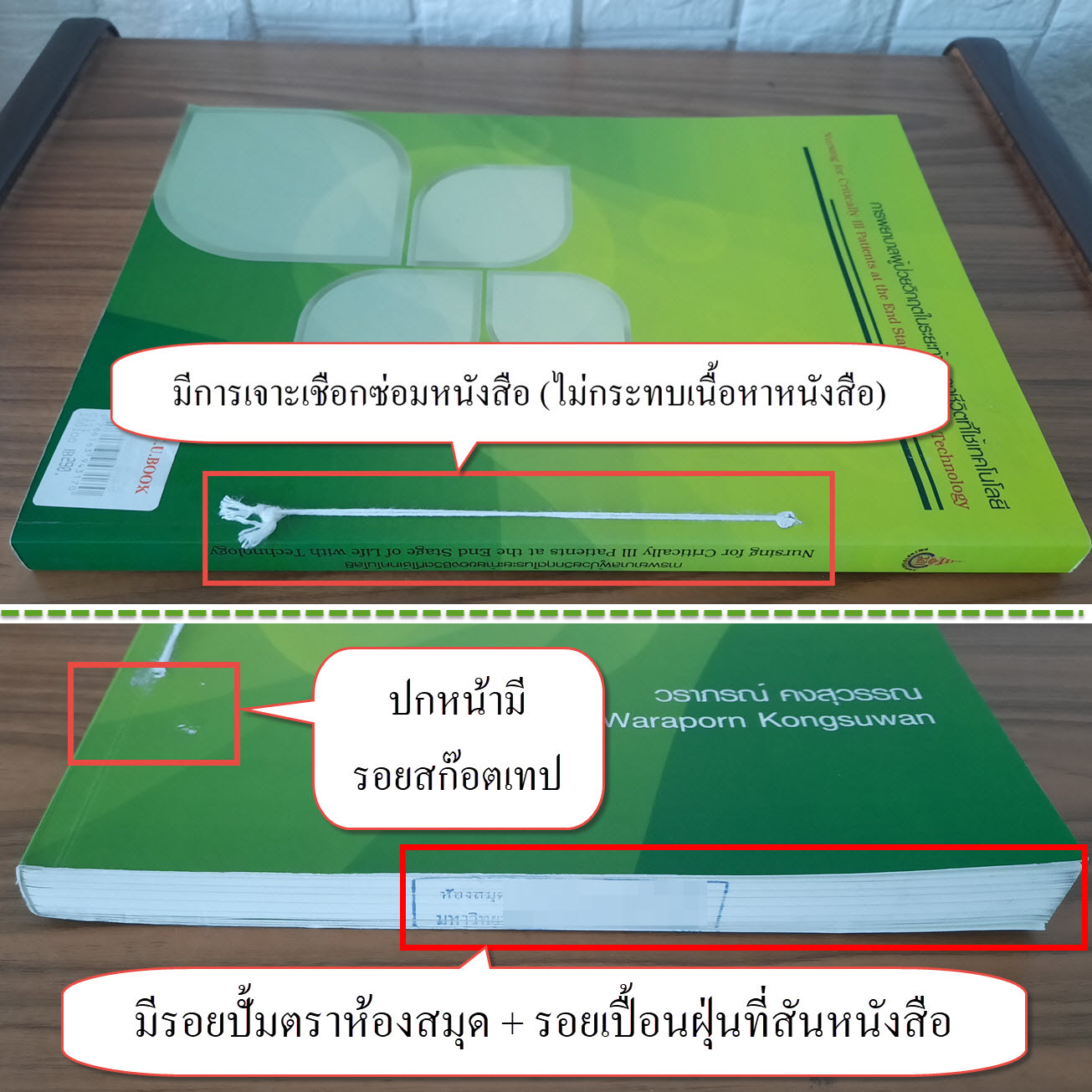 (2) มีรอยปั้มตามห้องสมุดที่สันหนังสือ และเนื้อกระดาษบางหน้า รายละเอียดตามภาพ