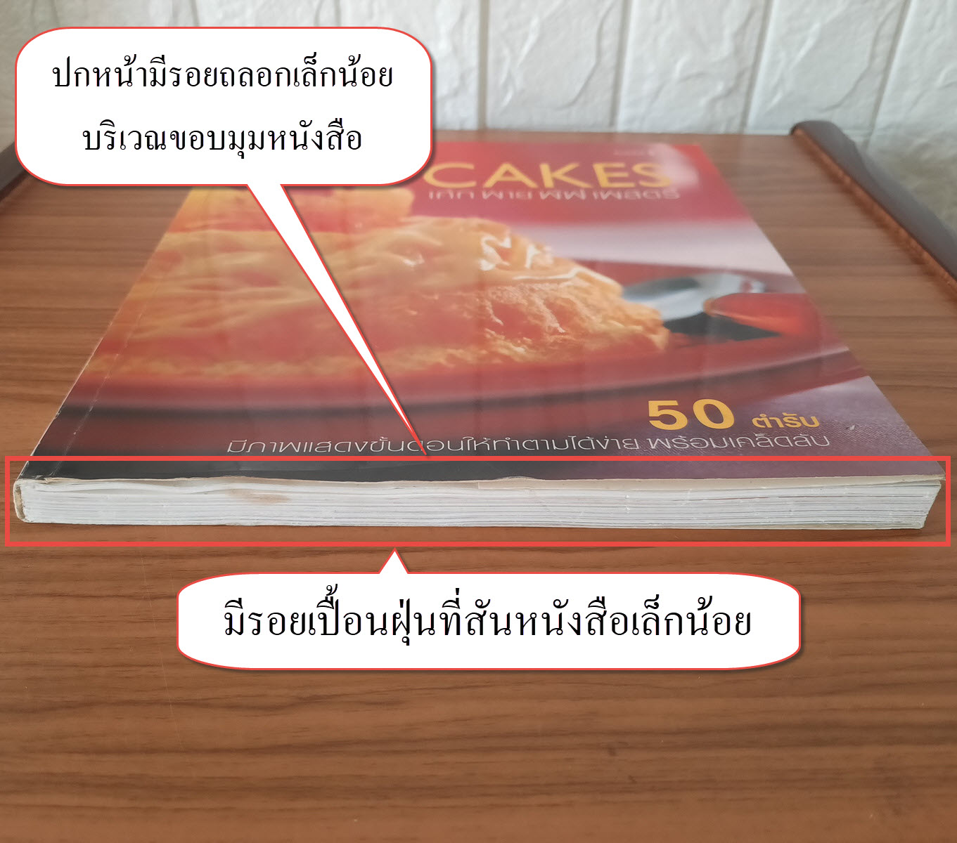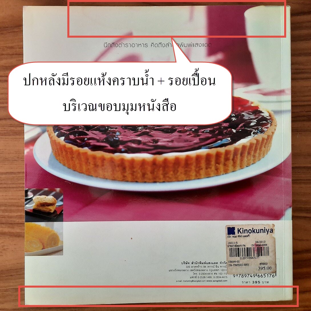 (2) ปกหน้า/ปกหลัง มีรอยแห้งคราบน้ำ + รอยเปื้อน + รอยถลอกเล็กน้อย บริเวณขอบมุมหนังสือ (ไม่กระทบเนื้อหาหนังสือ) รายละเอียดตามภาพ