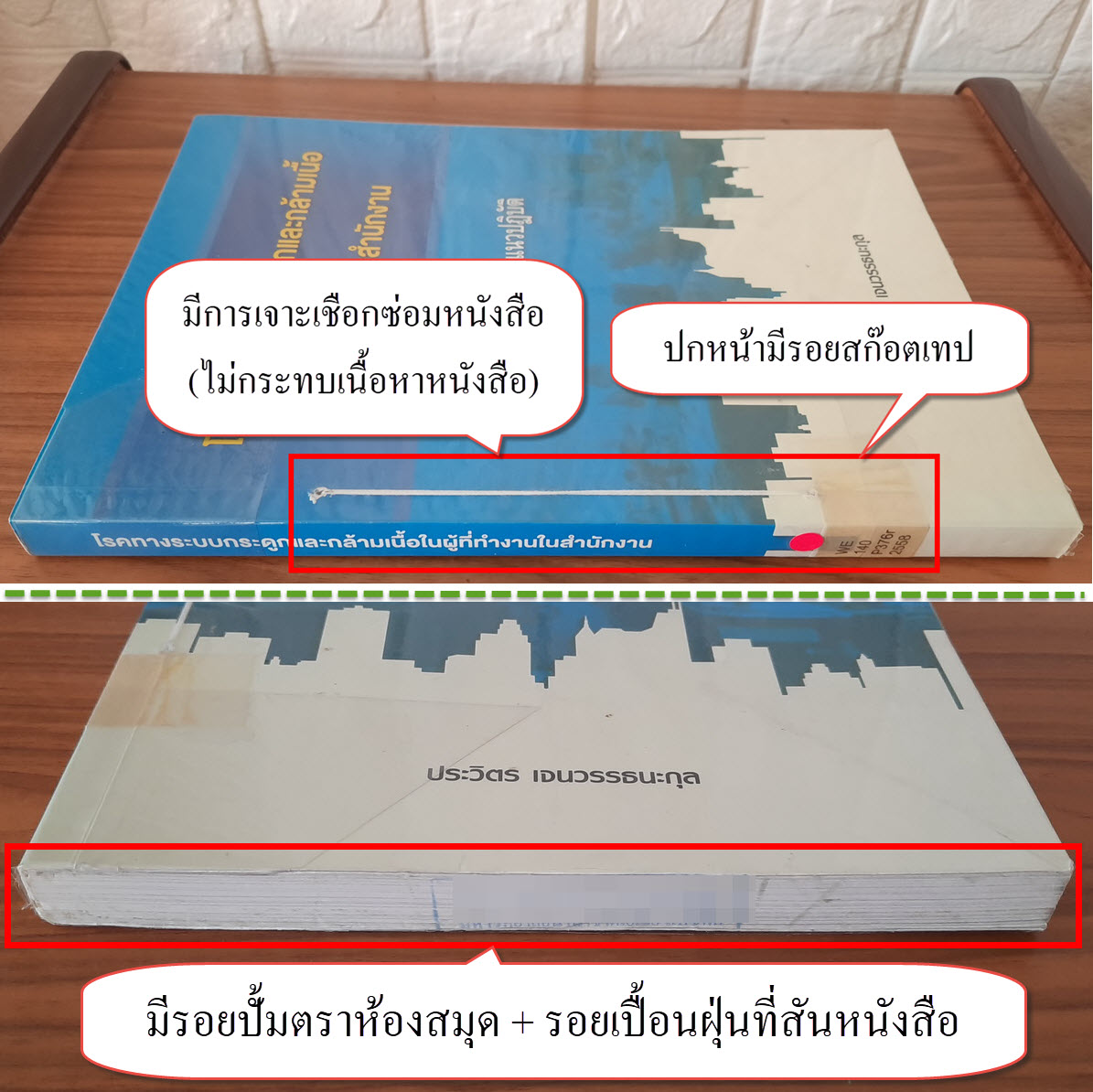 (3) ปกหน้า/ปกหลัง/หน้ารองปกหน้า-หลัง มีรอยสก๊อตเทป + รอยกระดาษถลอก (ไม่กระทบการใช้งาน) รายละเอียดตามภาพ