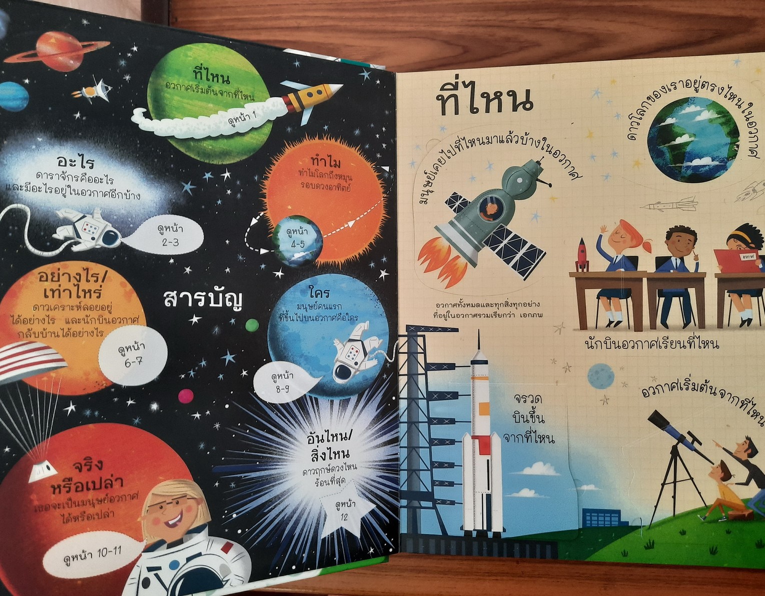 และอื่นๆ อีกมากมายที่คัดสรรมาอย่างดีแล้ว นำเสนอพร้อมภาพประกอบสี่สีสวยงาม ชวนติดตามตลอดเล่ม สำหรับเด็กๆ ที่สนใจเรื่องราวของอวกาศ ไม่ควรพลาด!