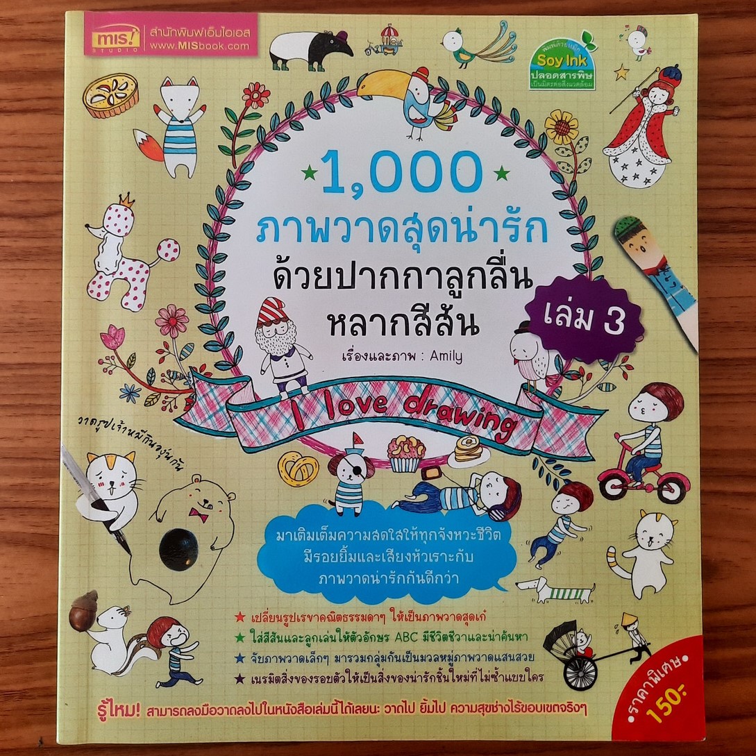 (มือสอง) หนังสือ 1000 ภาพวาดสุดน่ารัก ด้วยปากกาลูกลื่นหลากสีสัน เล่ม 3 สอนวาดรูป วาดการ์ตูน วาดเส้น Drawing วาดภาพ เขียนภาพ งานศิลป์ ศิลปะ
