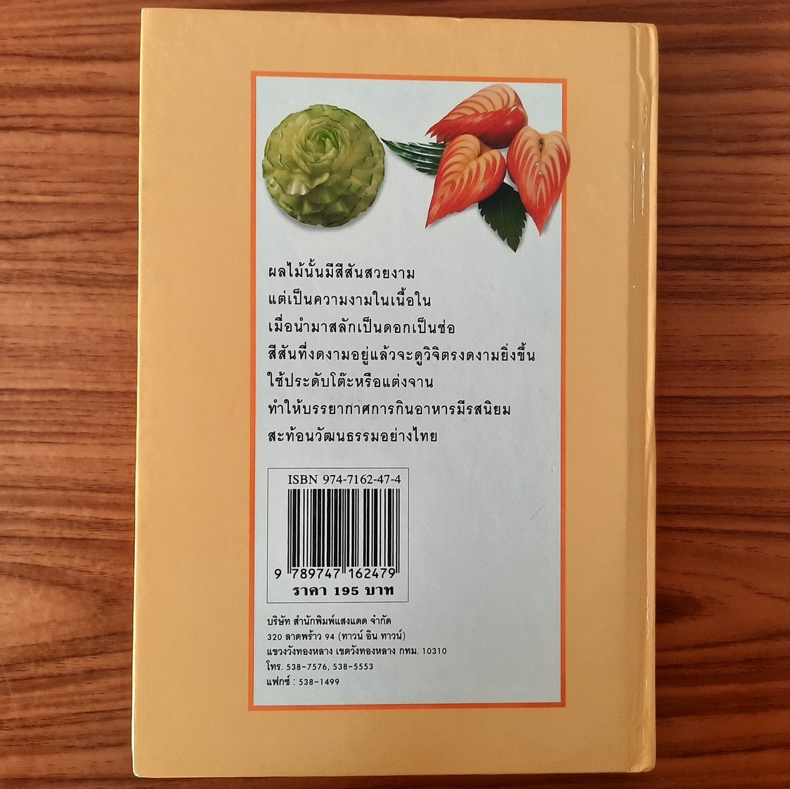 หนังสือ "สลักผลไม้" ได้รวบรวมการแกะสลักผลไม้ตั้งแต่แบบง่ายๆ เหมาะสำหรับผู้เริ่มฝึก จนถึงแบบที่มีความวิจิตรบรรจง ดังที่ท่านเห็นอยู่ในมือของท่านเองในขณะนี้