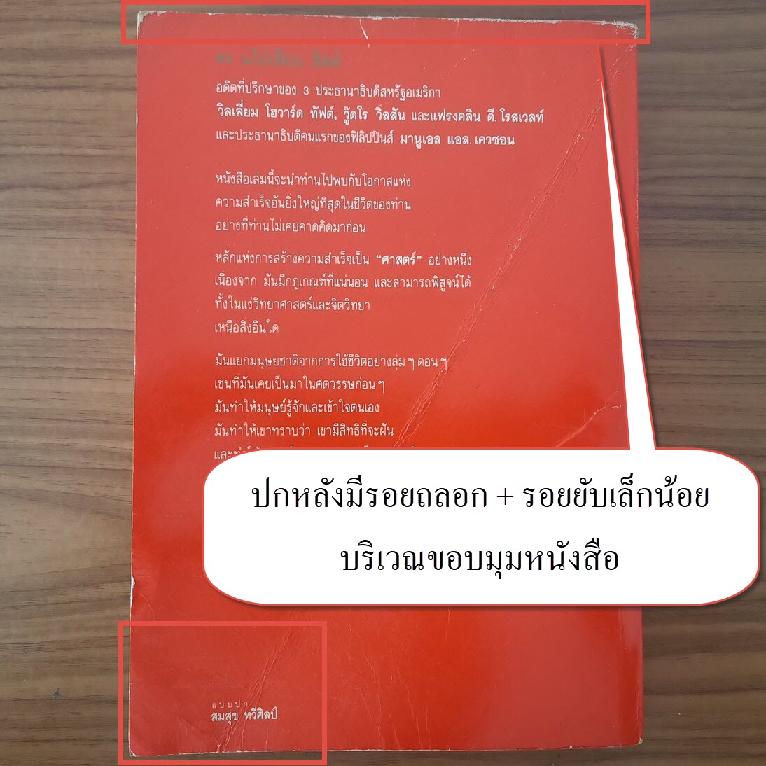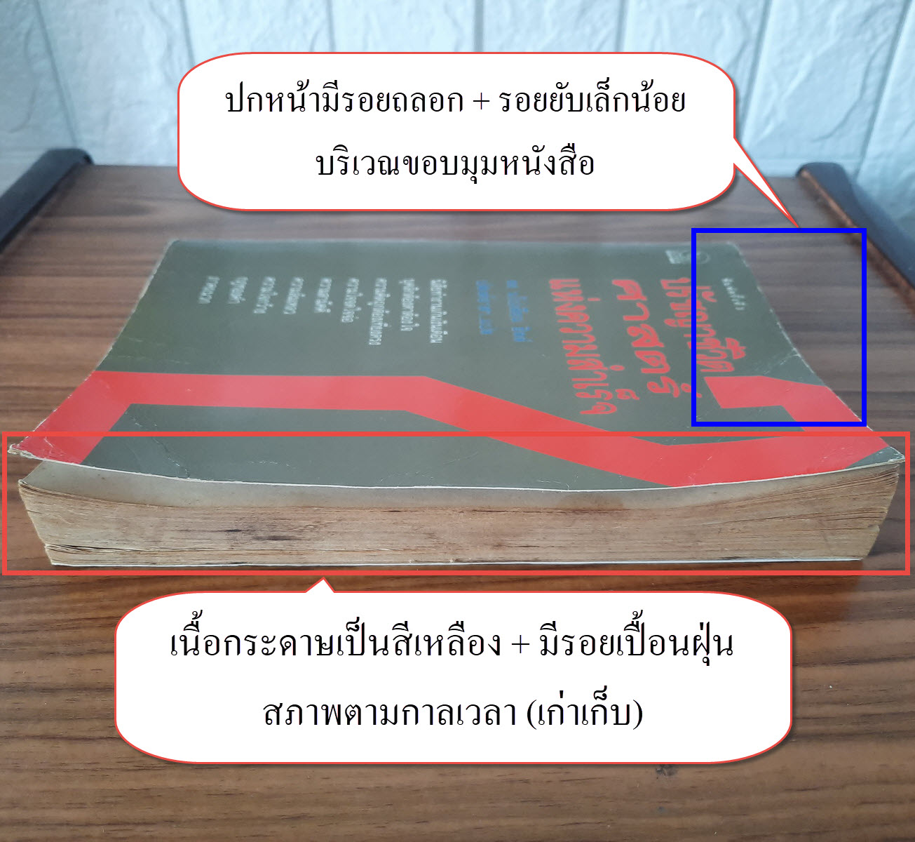 (2) ปกหน้า/ปกหลังมีรอยถลอก + รอยยับเล็กน้อยบริเวณขอบมุมหนังสือ รายละเอียดตามภาพ