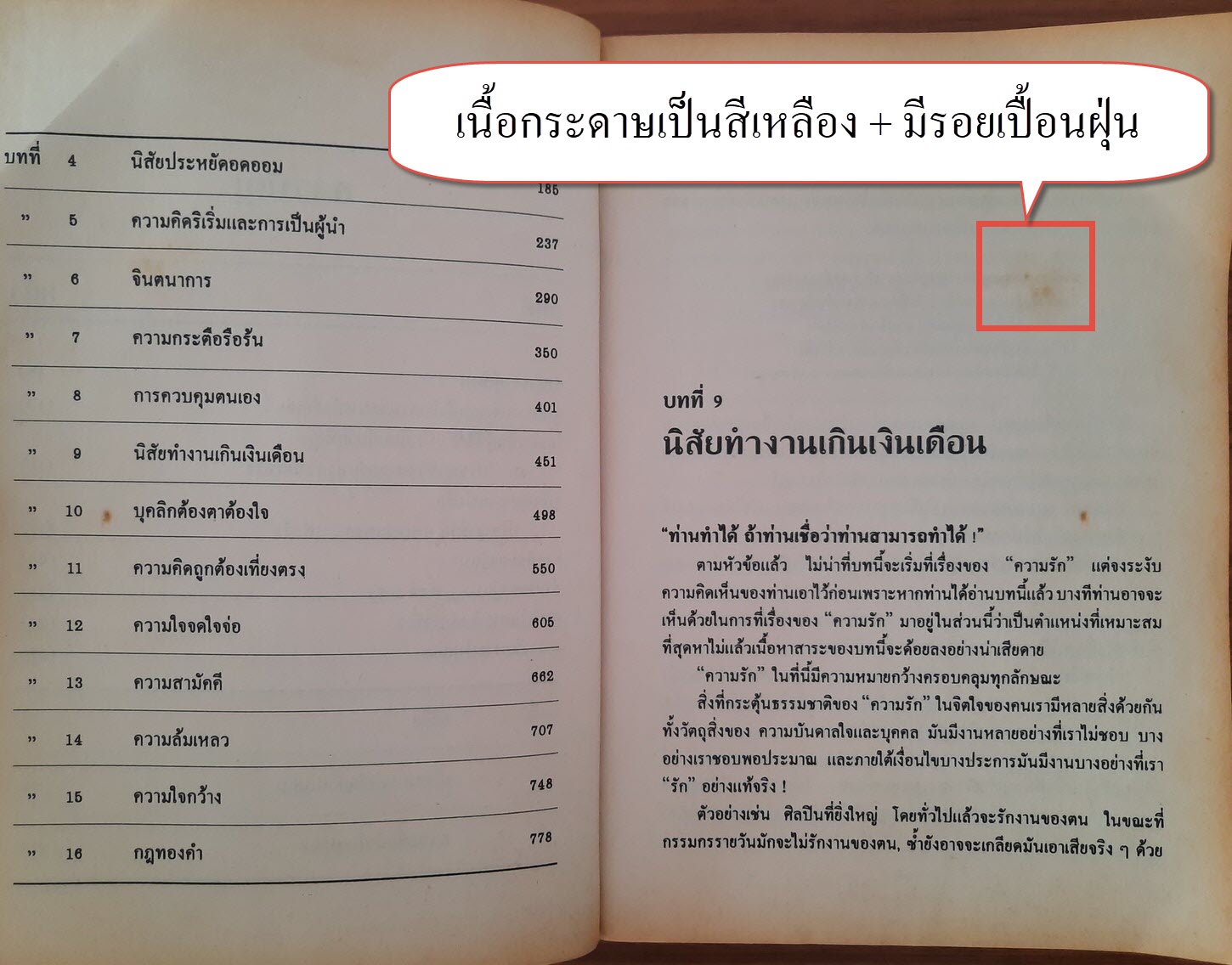 (1) หนังสือมือสองสภาพตามกาลเวลา (เก่าเก็บ) เนื้อกระดาษเป็นสีเหลือง + มีรอยเปื้อนฝุ่นที่สันหนังสือและเนื้อกระดาษ (ไม่กระทบเนื้อหาหนังสือ) ไม่มีรอยขีดเขียนใดๆ รายละเอียดตามภาพ ใช้งานได้ปกติดีมาก