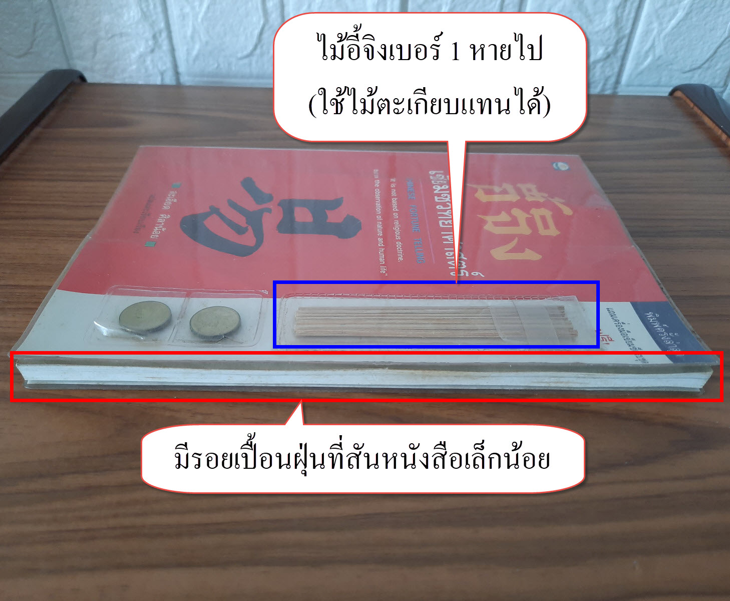 (2) อุปกรณ์ไม้อี้จิงเบอร์ 1 หายไป (แต่ใช้ไม้ตะเกียบ หรือไม้ชนิดอื่นแทนได้)