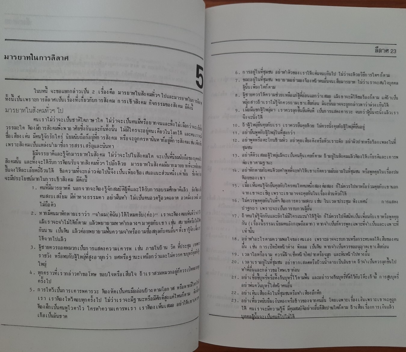 3. ในบทที่ 5 ได้เพิ่มเนื้อหามารยาทในการเข้าสังคมทั่วๆ ไป ซึ่งได้พิจารณาแล้วว่ามีความเกี่ยวข้องกันกับบุคลิก การวางตัวและมารยาทในสังคมไทยทั่วไป