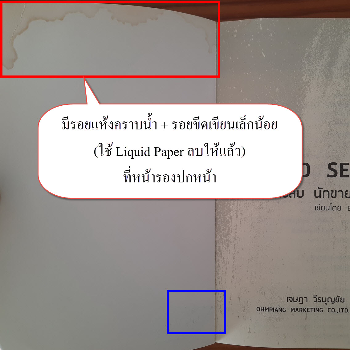 (3) มีรอยขีดเขียนที่หน้ารองปกหน้า (ใช้ Liquid Paper ลบให้แล้ว) ไม่มีรอยขีดเขียนที่จุดอื่นอีก