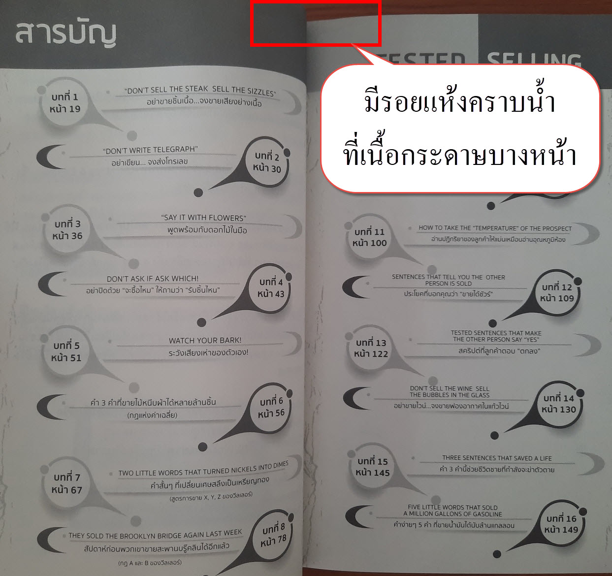 (1) หนังสือมือสอง มีรอยแห้งคราบน้ำ + รอยเปื้อนฝุ่นที่สันหนังสือ และเนื้อกระดาษบางหน้า (ไม่กระทบเนื้อหาหนังสือ) รายละเอียดตามภาพ ใช้งานได้ปกติดี