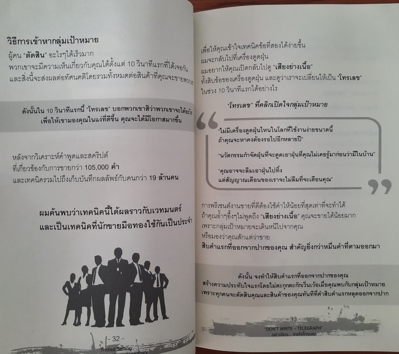 - บทที่ 1 "DON'T SELL THE STEAK SELL THE SIZZLES" (อย่าขายชิ้นเนื้อ...จงขายเสียงย่างเนื้อ)