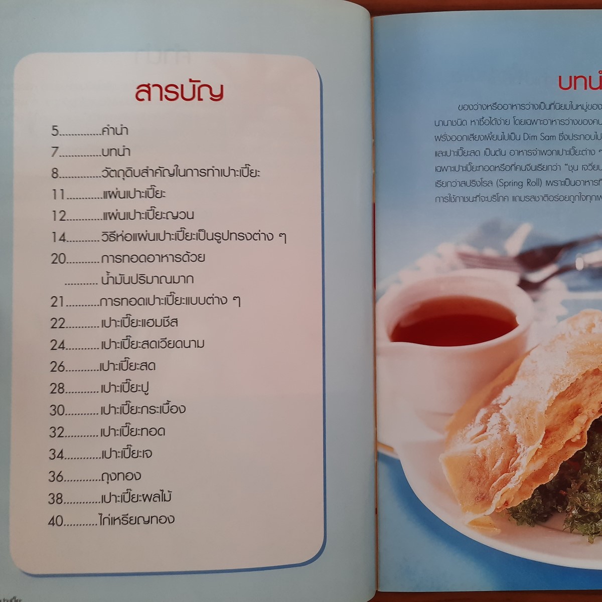 ในหนังสือเล่มนี้ข้าพเจ้าขอเสนอแนะการทำแป้งเปาะเปี๊ยะมาทําเป็นอาหารว่างที่มีไส้นานาชนิด ทั้งคาวและหวาน รวมทั้งการห่อเปาะเปี๊ยะในรูปแบบต่างๆ เพื่อให้เกิดความแปลกใหม่ในตัวอาหาร ซึ่งหวังว่าคงเป็นประโยชน์ต่อท่านผู้อ่าน