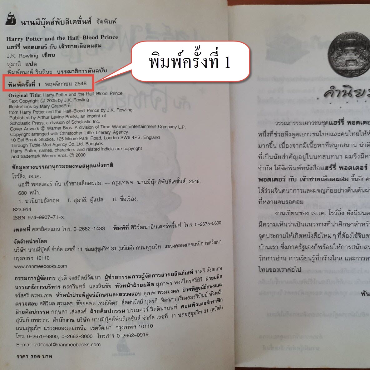 🌸🌸 (มือสอง) [พิมพ์ครั้ง 1] Harry Potter and The Half-Blood Prince แฮร์รี่ พอตเตอร์ กับ เจ้าชายเลือดผสม เล่ม 6 โดย J.K. Rowling 🌸🌸