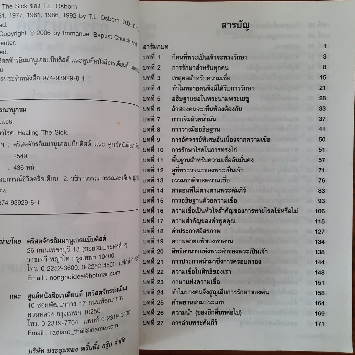 สำนักพิมพ์ : คริสตจักรอิมมานูเอลแบ๊บติสต์ และศูนย์หนังสือเรเดียนท์