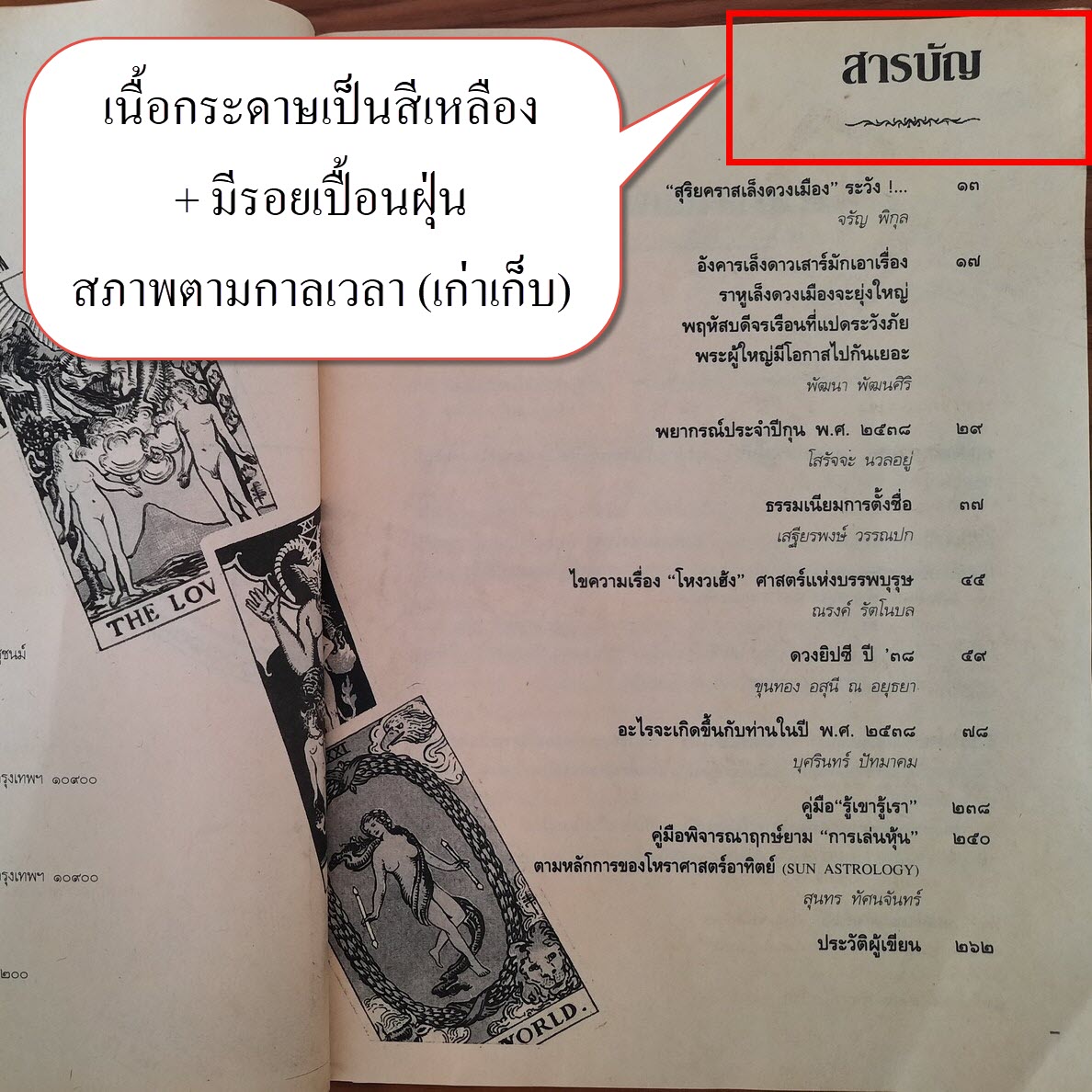 นอกจากนี้ ภายในเล่มเรายังได้แทรกเกร็ดความรู้เกี่ยวกับความเชื่อและโชคลางต่างๆ รวมทั้งประวัติผู้เขียนโดยสังเขป พร้อมสถานที่ติดต่อของโหราจารย์บางท่าน สำหรับท่านที่สนใจจะดูดวงเป็นการส่วนตัว