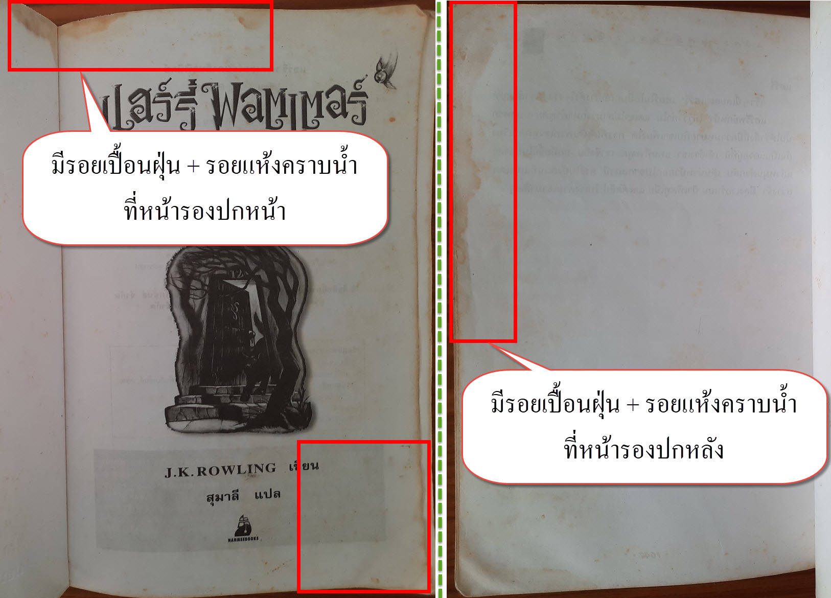 (2) ปกหน้า/ปกหลัง มีรอยยับ + รอยถลอก บริเวณขอบมุมหนังสือ รายละเอียดตามภาพ