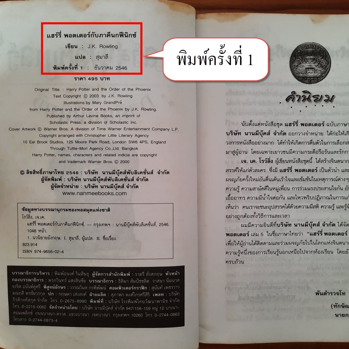 🌸🌸 (มือสอง) [พิมพ์ครั้ง 1] Harry Potter and The order of the phoenix แฮร์รี่ พอตเตอร์ กับ ภาคีนกฟีนิกซ์ เล่ม 5 โดย J.K. Rowling 🌸🌸