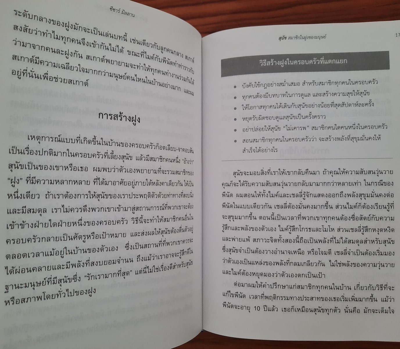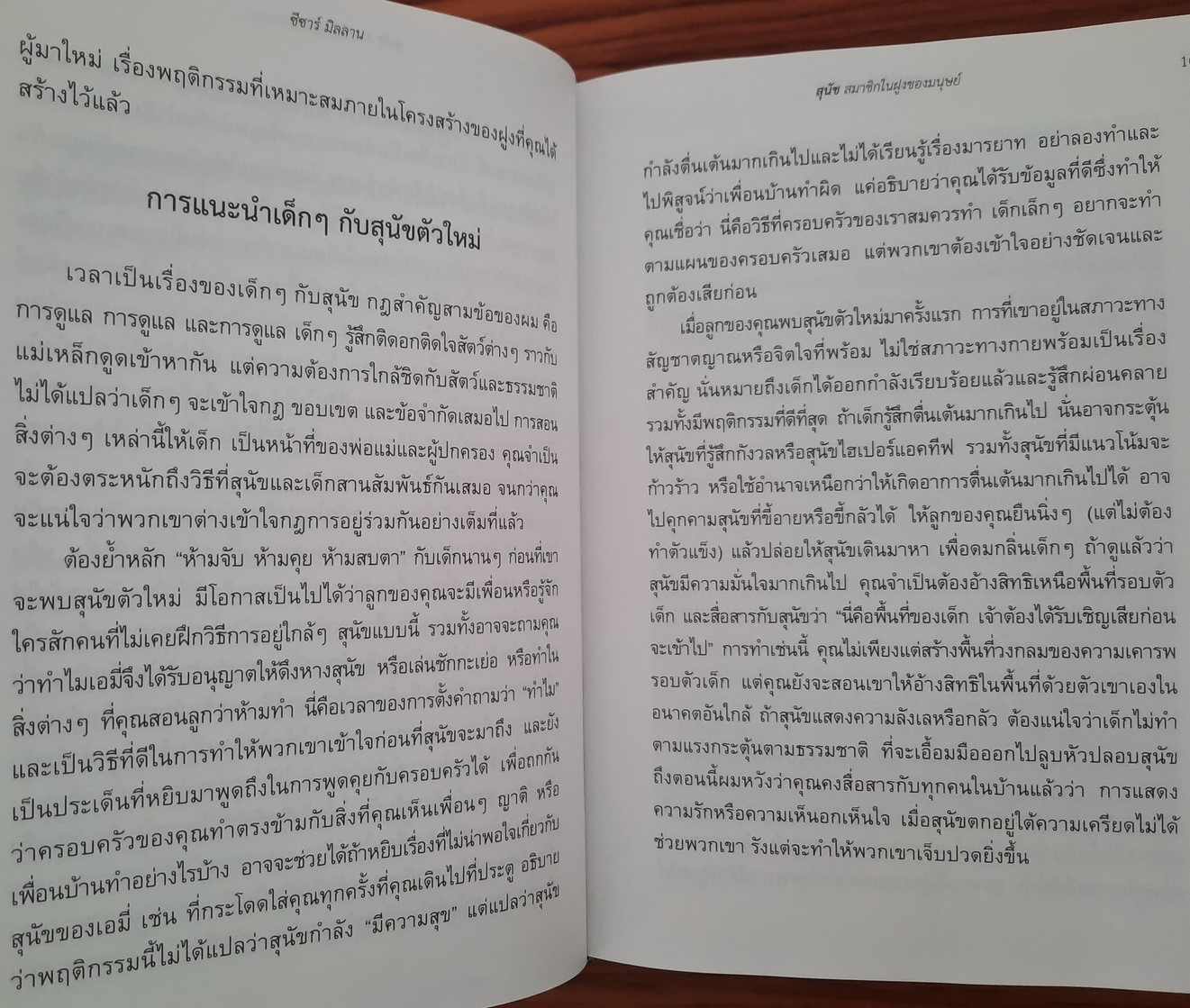 ผมหวังว่าหนังสือเล่มนี้จะเข้าถึงสมาชิกทุกคนในครอบครัวของคุณ ตั้งแต่คนที่เด็กที่สุดไปจนถึงคนสูงวัยที่สุด และเชื้อเชิญพวกเขาให้มาร่วมในการเชื่อมโยงกับสุนัข ด้วยวิธีที่จะสร้างความสมดุลให้สุนัขและมนุษย์ในแบบเดียวกัน การเชื่อมโยงนี้ไม่จําเป็นต้องใช้เงินและไม่ต้องการระดับการศึกษาขั้นสูงใดๆ หรือความฉลาด