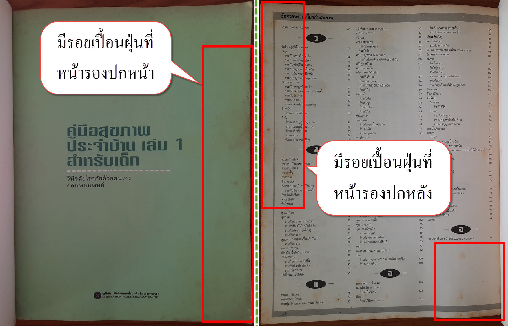 (2) ปกหน้า/ปกหลัง มีรอยถลอก + รอยเปื้อนฝุ่นเล็กน้อย บริเวณขอบมุมหนังสือ