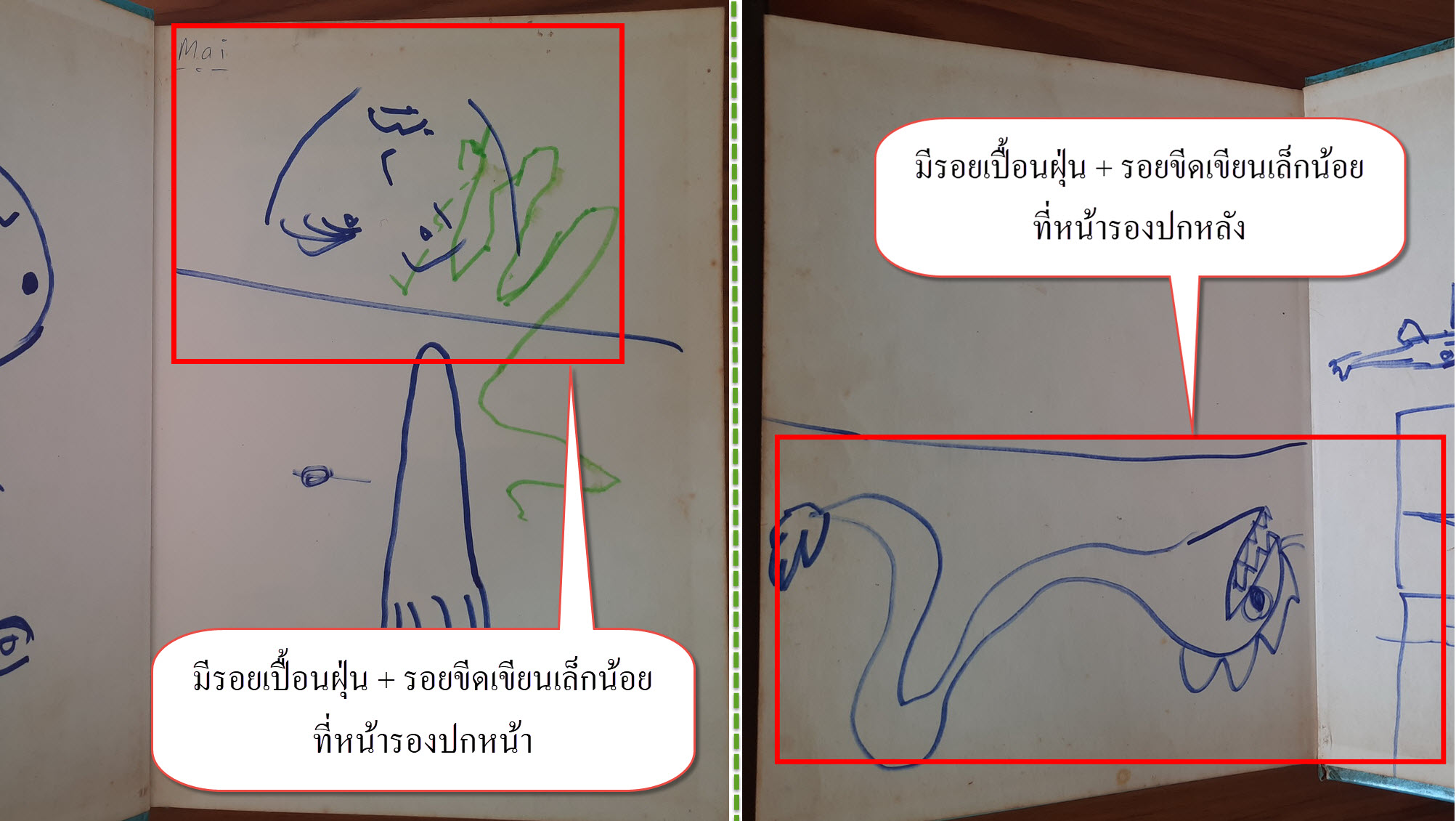 (2) มีรอยขีดเขียนที่หน้ารองปกหน้า/หลัง (ไม่กระทบเนื้อหาหนังสือ) รายละเอียดตามภาพ