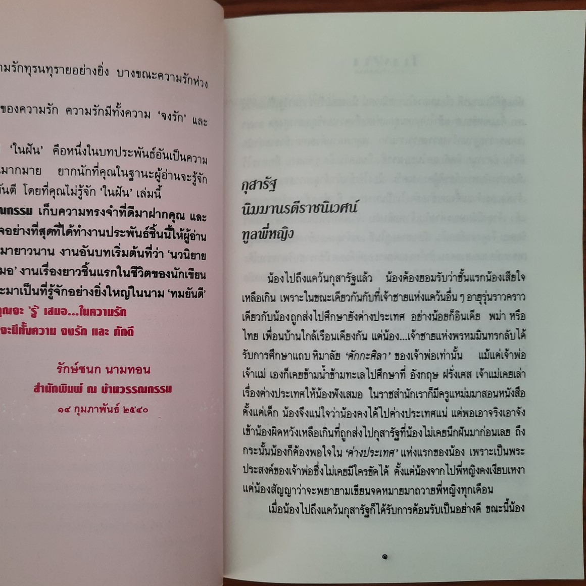 #นวนิยายไทย #นวนิยายย้อนยุค #ในฝัน #โรสลาเรน #ทมยันตี #วรรณกรรมย้อนยุค #นวนิยายทมยันตี