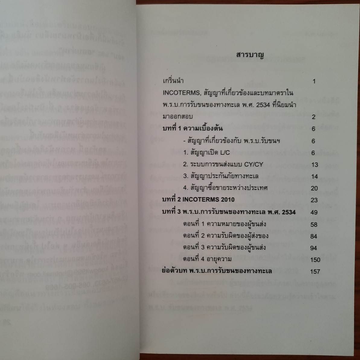 - INCOTERMS, สัญญาที่เกี่ยวข้องและบทมาตราใน พ.ร.บ.การรับขนของทางทะเล พ.ศ. 2534 ที่นิยมนำมาออกสอบ