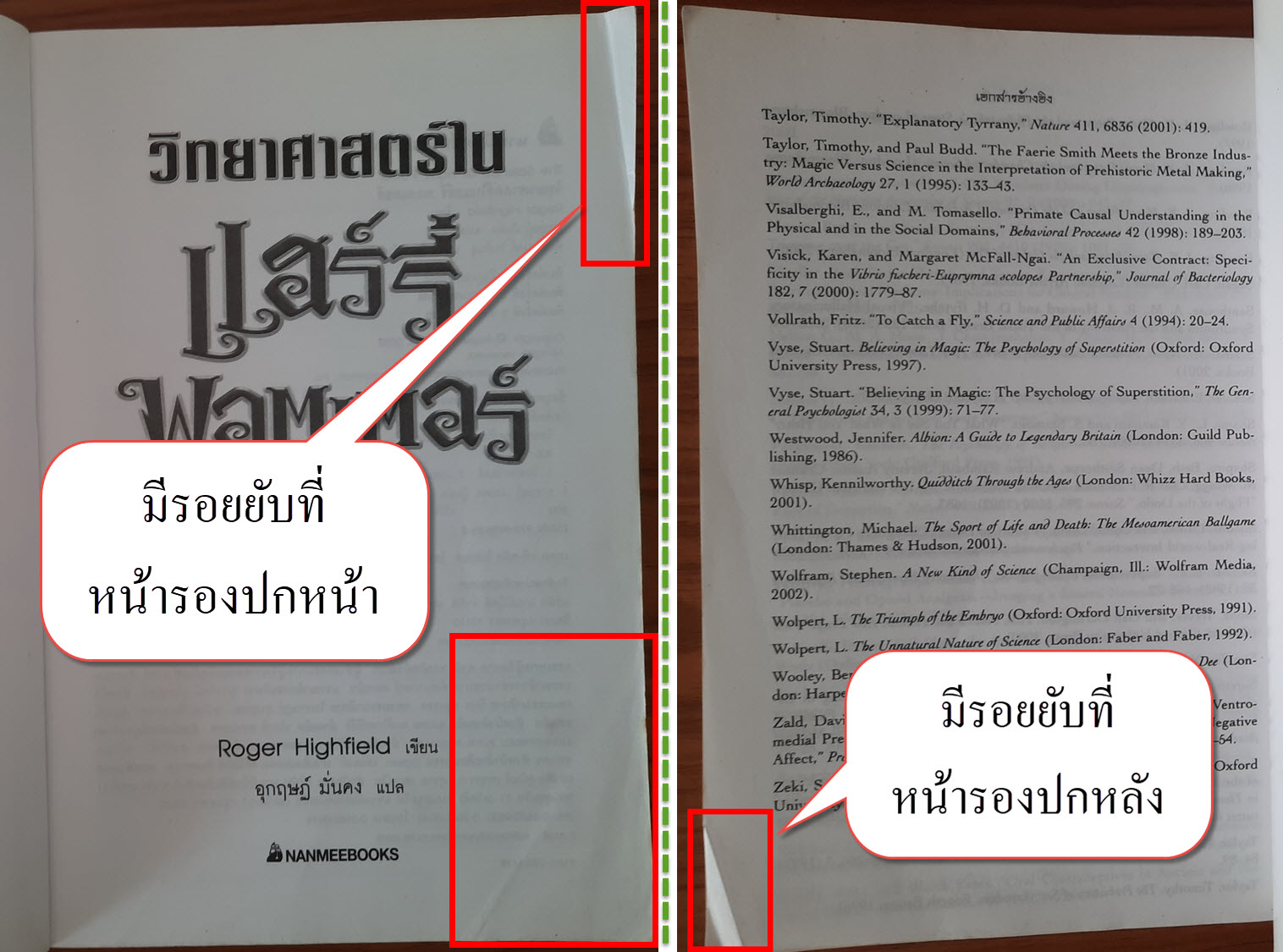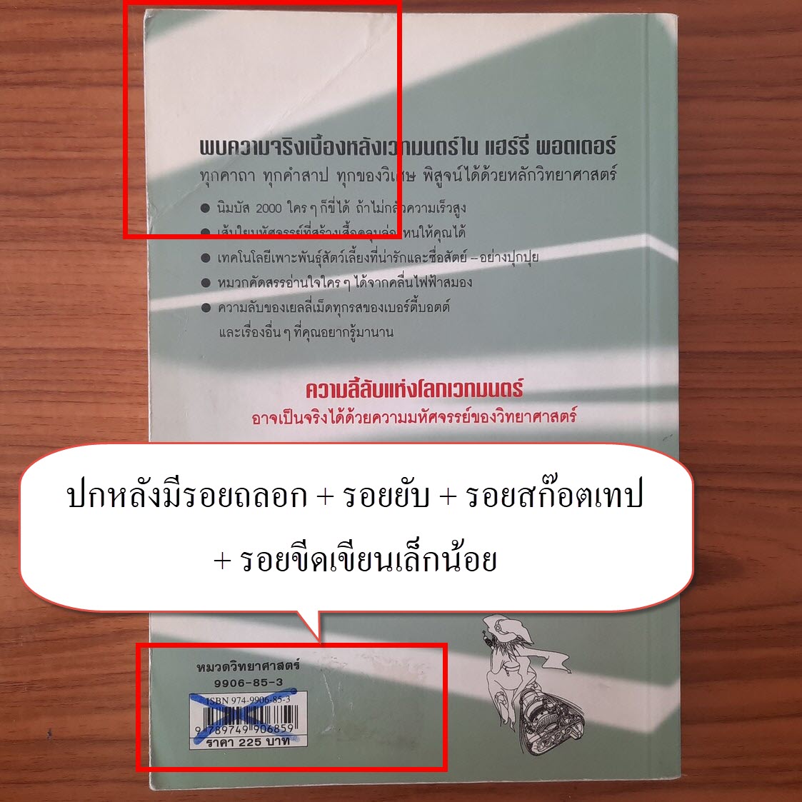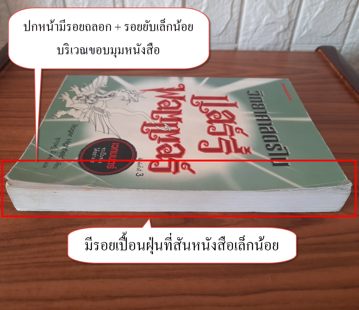 (2) ปกหน้า/ปกหลัง มีรอยถลอก + รอยยับ + รอยสก๊อตเทป + รอยขีดเขียนเล็กน้อย รายละเอียดตามภาพ