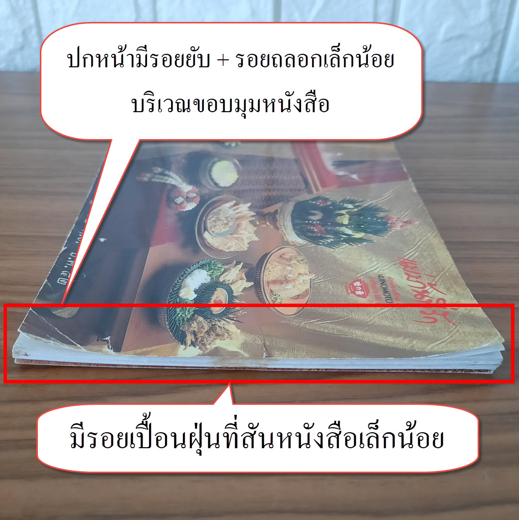 (2) ปกหน้า/ปกหลังมีรอยถลอก + รอยยับเล็กน้อย บริเวณขอบมุมหนังสือ รายละเอียดตามภาพ