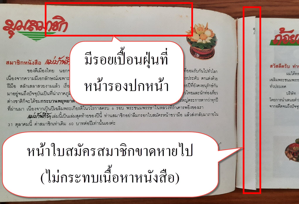 (3) หน้าใบสมัครสมาชิกขาดหายไป (ไม่กระทบเนื้อหาหนังสือ) รายละเอียดตามภาพ