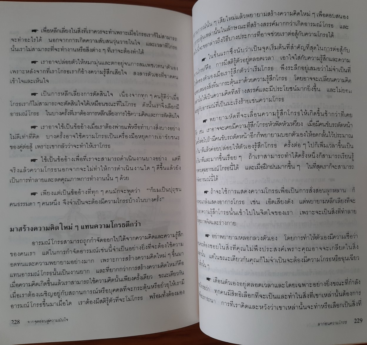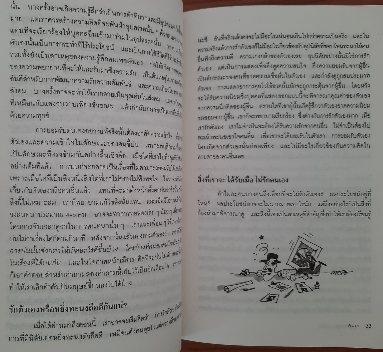 หนังสือเล่มนี้จะช่วยเป็นกำลังใจให้ผู้อ่านต่อสู้กับตนเองในการแก้ไขจุดอ่อนในอารมณ์ที่บั่นทอนความมั่นใจในตนเอง ทำให้สามารถให้เหตุผลกับตนเอง รู้จักคิดและไม่ตกเป็นทาสความคิดของผู้อื่น