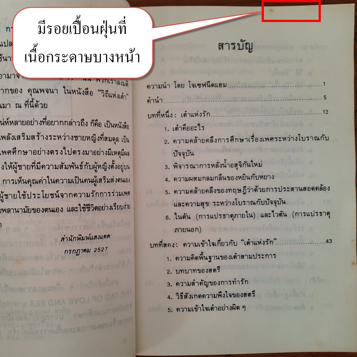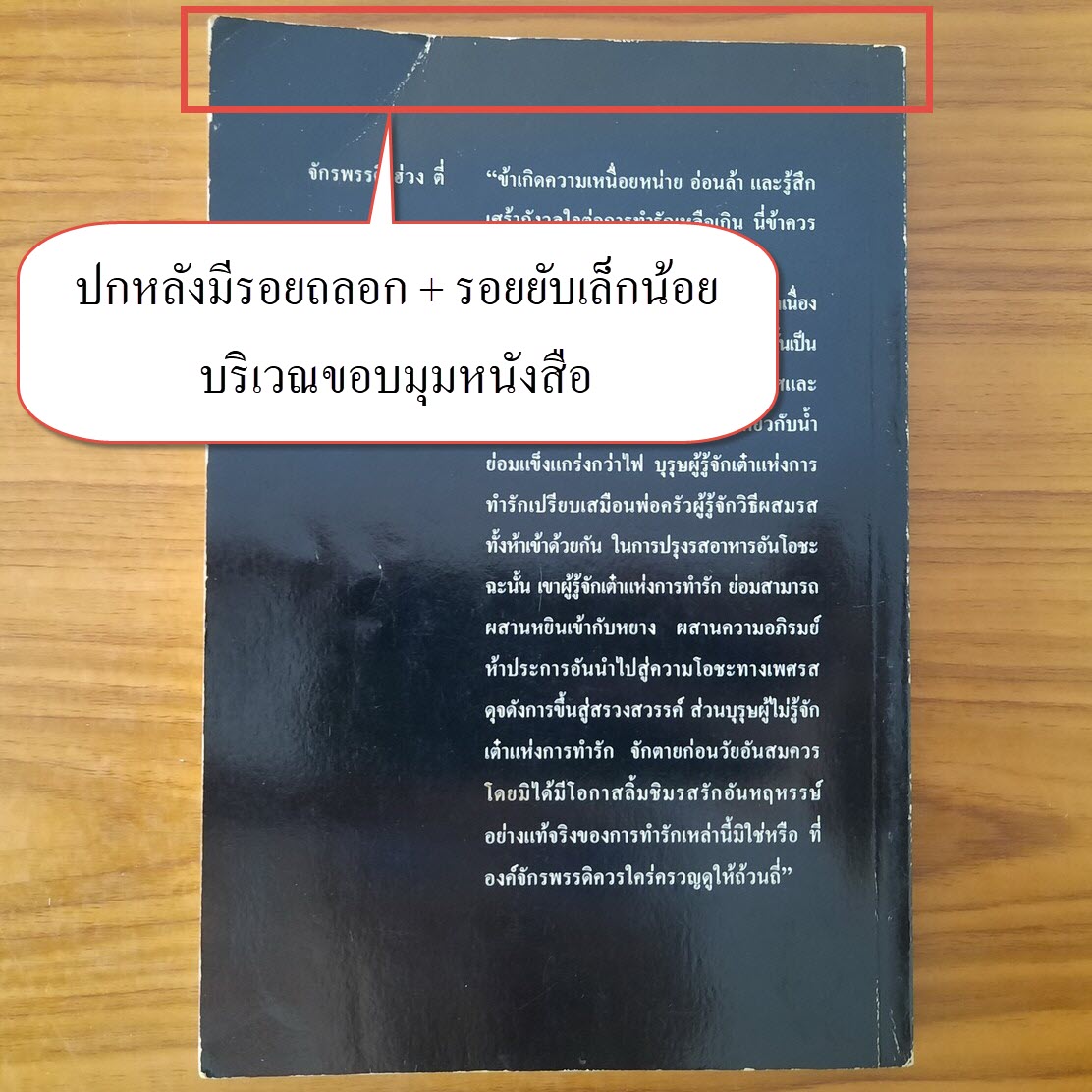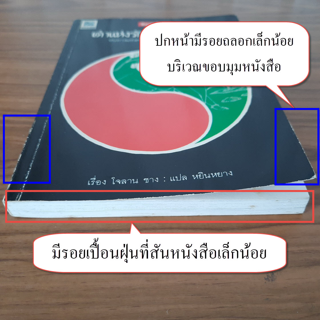 (2) ปกหน้า/ปกหลัง มีรอยถลอก + รอยยับเล็กน้อย บริเวณขอบมุมหนังสือ รายละเอียดตามภาพ