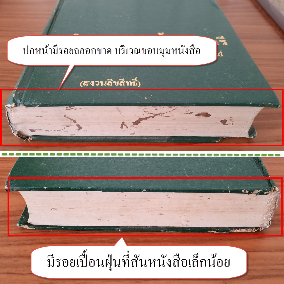 (2) ปกหน้า/ปกหลัง/หน้ารองปกหน้า-หลัง มีรอยถลอกขาดบริเวณขอบมุมหนังสือ (ไม่กระทบการใช้งาน) รายละเอียดตามภาพ