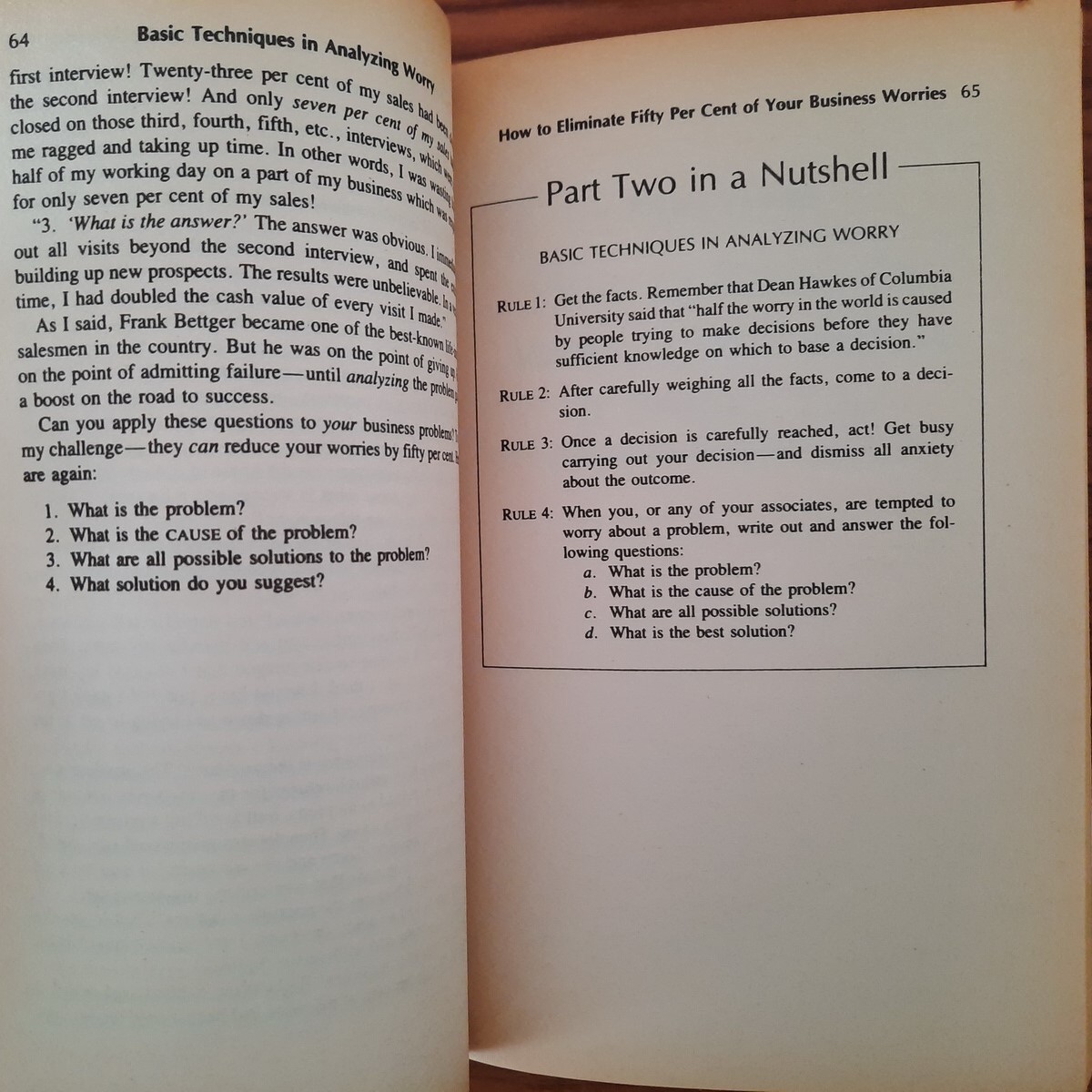 เดล คาร์เนกี แสดงให้เห็นว่าความกังวลนั้นถูกพิชิตได้โดยผู้คนนับพัน ไม่ว่าจะเป็นบุคคลมีชื่อเสียงหรือคนธรรมดาทั่วไป พร้อมทั้งมอบแนวทางปฏิบัติสำหรับการใช้ชีวิตอย่างมีความสุขและมองโลกในแง่บวกมากขึ้น