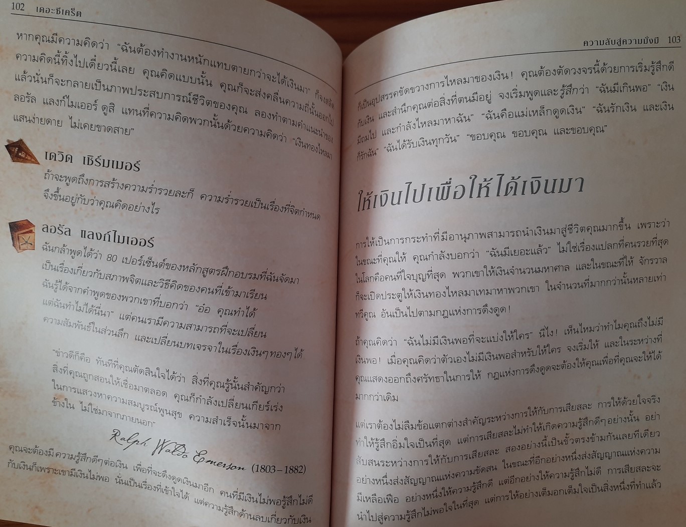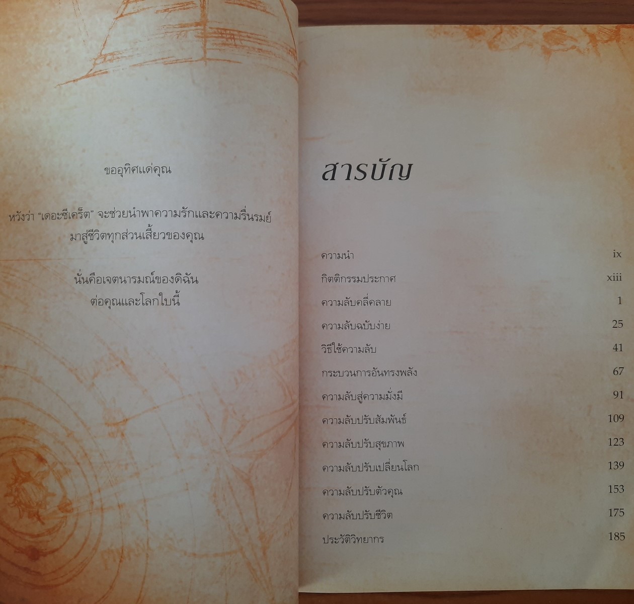 เมื่อคุณอ่านหนังสือเล่มนี้ไปในแต่ละหน้าและได้ล่วงรู้ถึงความลับสำคัญนี้ คุณจะเรียนรู้วิธีการที่จะได้มี ได้เป็น และได้ทำทุกอย่างที่คุณต้องการ คุณจะได้รู้จักกับตัวเองอย่างแท้จริง และจะได้รู้ว่าสิ่งล้ำค่าแท้จริงที่รอคุณอยู่ข้างหน้าคืออะไร