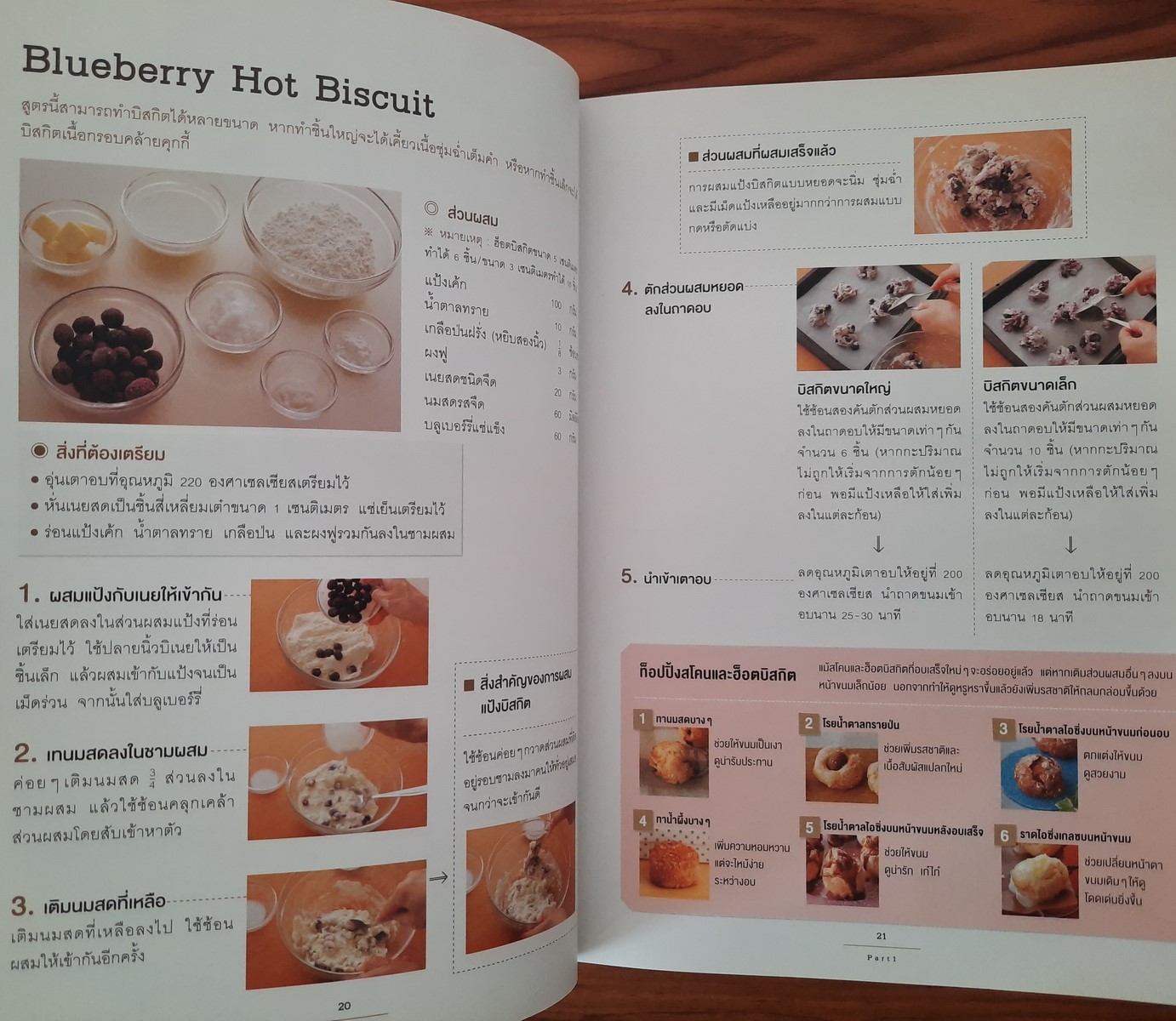 แต่ถ้าได้รับประทานตอนอบเสร็จใหม่ๆ จะอร่อยที่สุด ดิฉันจึงคิดค้นและพัฒนาสูตรสโคนและฮ็อตบิสกิตแบบต่างๆ เพื่อให้ทุกคนได้ลงมือทำเองที่บ้านถึง 55 เมนู