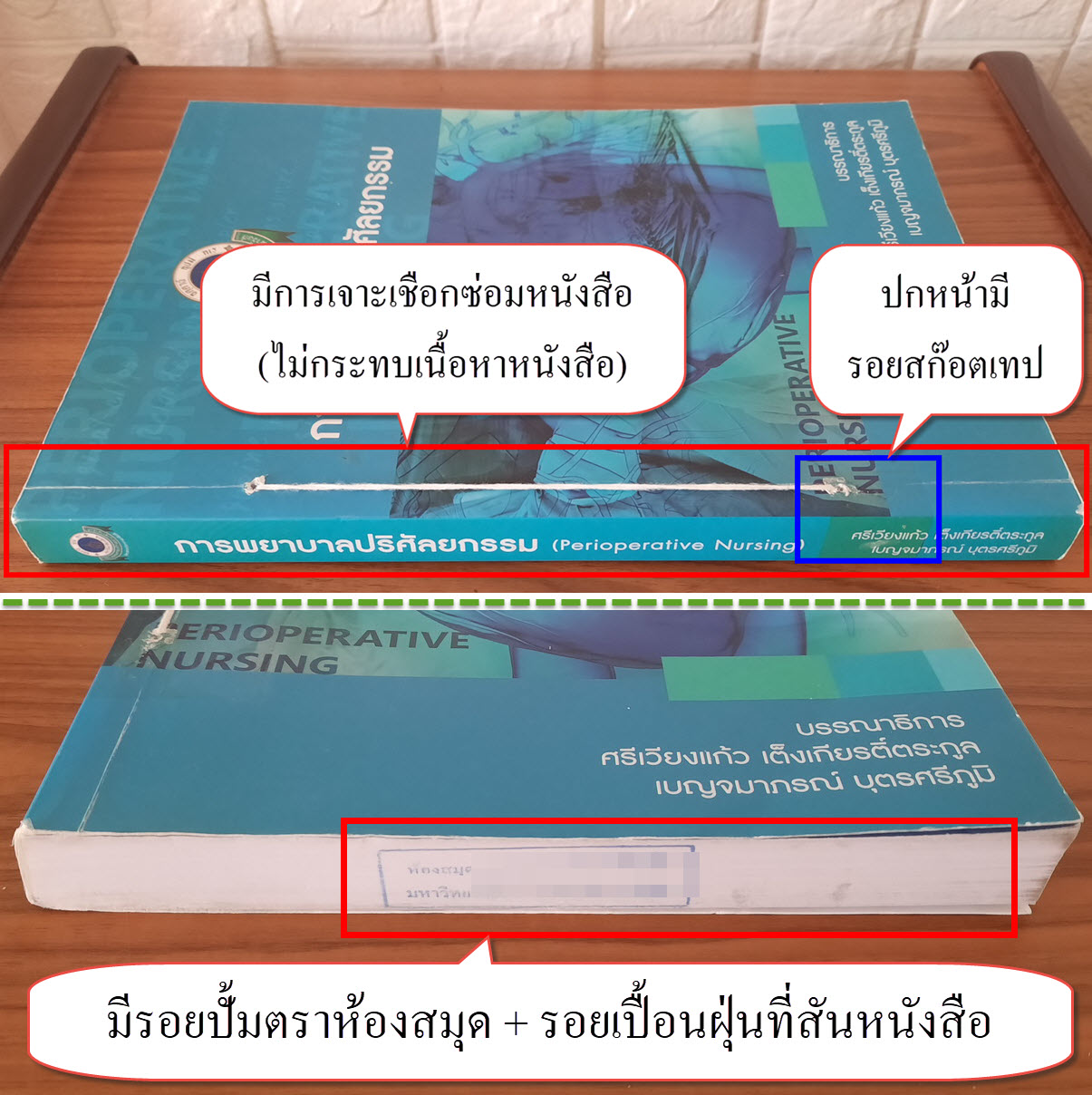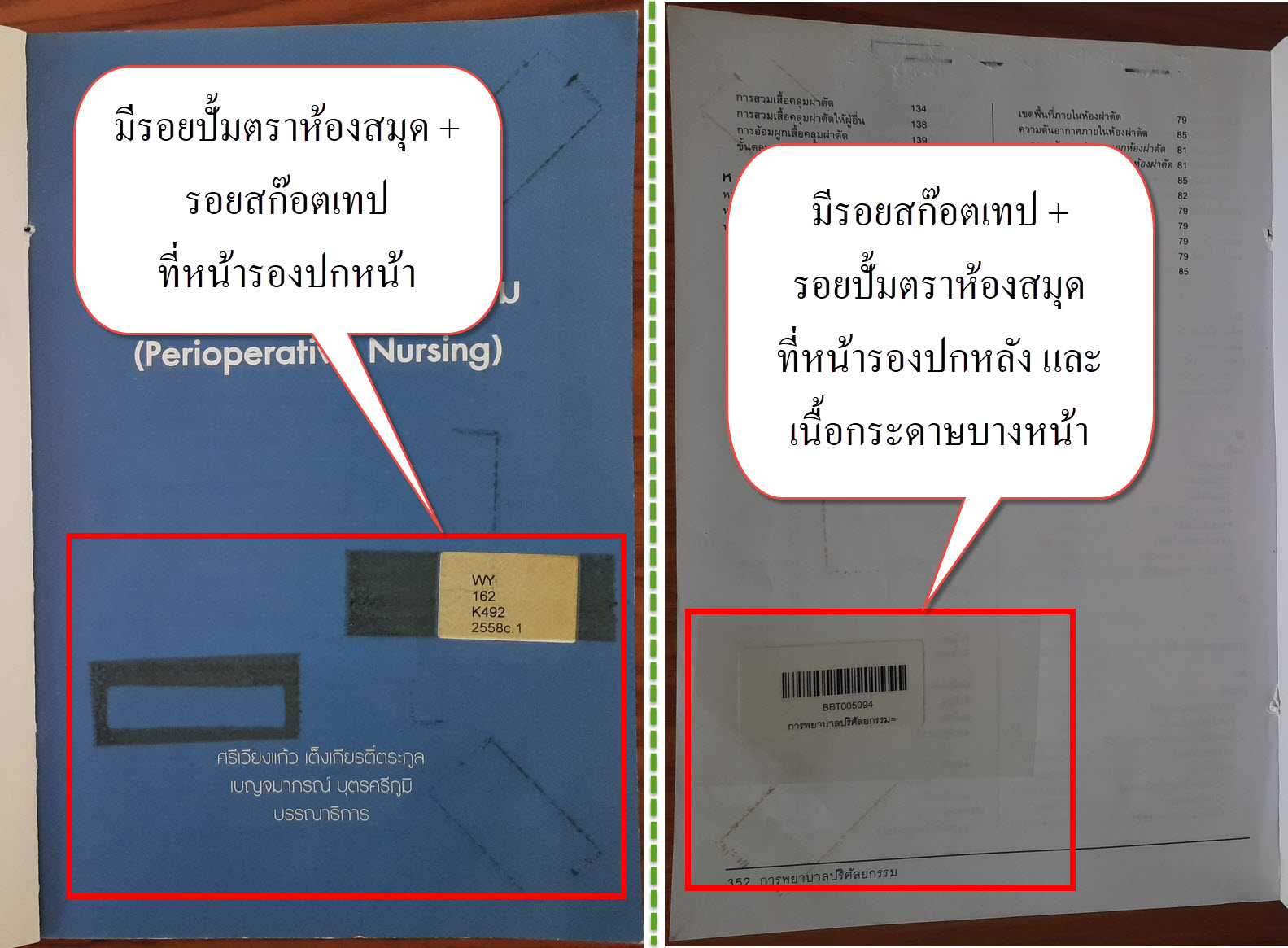 (2) มีรอยปั้มตามห้องสมุดที่สันหนังสือ และเนื้อกระดาษบางหน้า รายละเอียดตามภาพ