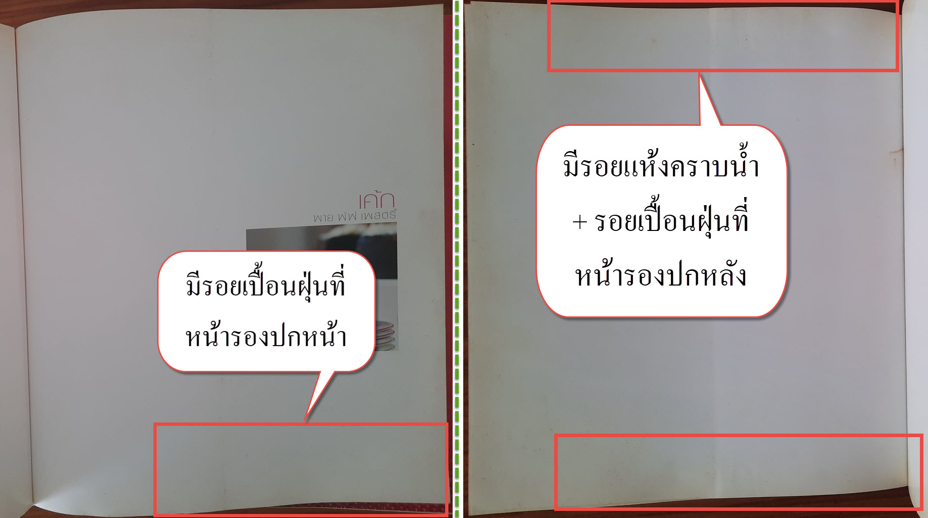 (2) ปกหน้า/ปกหลัง มีรอยแห้งคราบน้ำ + รอยเปื้อน + รอยถลอกเล็กน้อย บริเวณขอบมุมหนังสือ (ไม่กระทบเนื้อหาหนังสือ) รายละเอียดตามภาพ