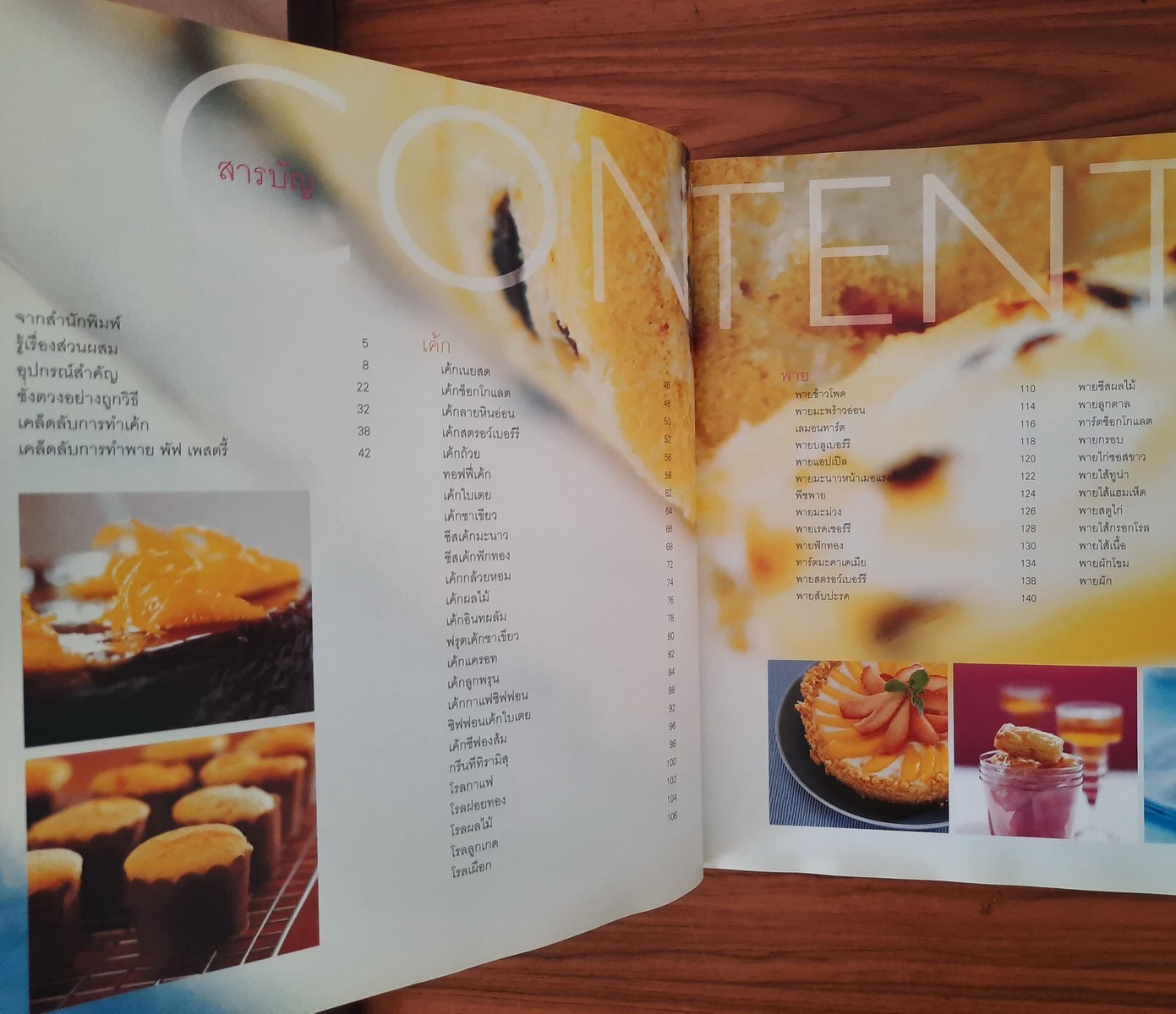 หมวดหมู่แยกเป็น 2 หมวดใหญ่ชัดเจน คือ หมวดเค้ก มีตั้งแต่เค้กเนย เค้กช็อกโกแลต เค้กกล้วยหอม เค้กผลไม้ เค้กโรล เป็นต้น และหมวดพาย ซึ่งแยกออกเป็นพายหวานหรือเรียกว่าพายร่วน กับพายชั้นหรือเรียกว่าพัฟ เพสตรี้ พายแต่ละชนิดก็มีไส้ต่างๆ ให้เลือกทำหลากหลายชนิด