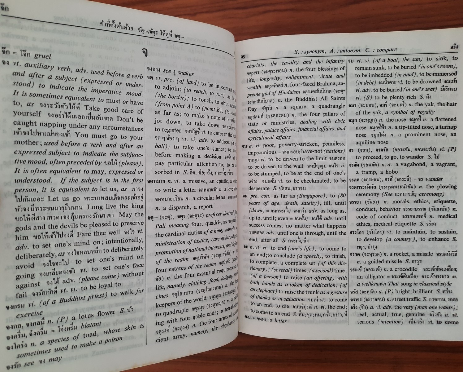 ระบุประเภทของคำ ทั้งศัพท์หลักและศัพท์รอง ทั้งยังรวบรวมคำศัพท์ที่มีความหมายเหมือน ความหมายตรงกันข้าม และความหมายเปรียบเทียบไว้ท้ายศัพท์เพื่อการค้นคว้าเพิ่มเติม