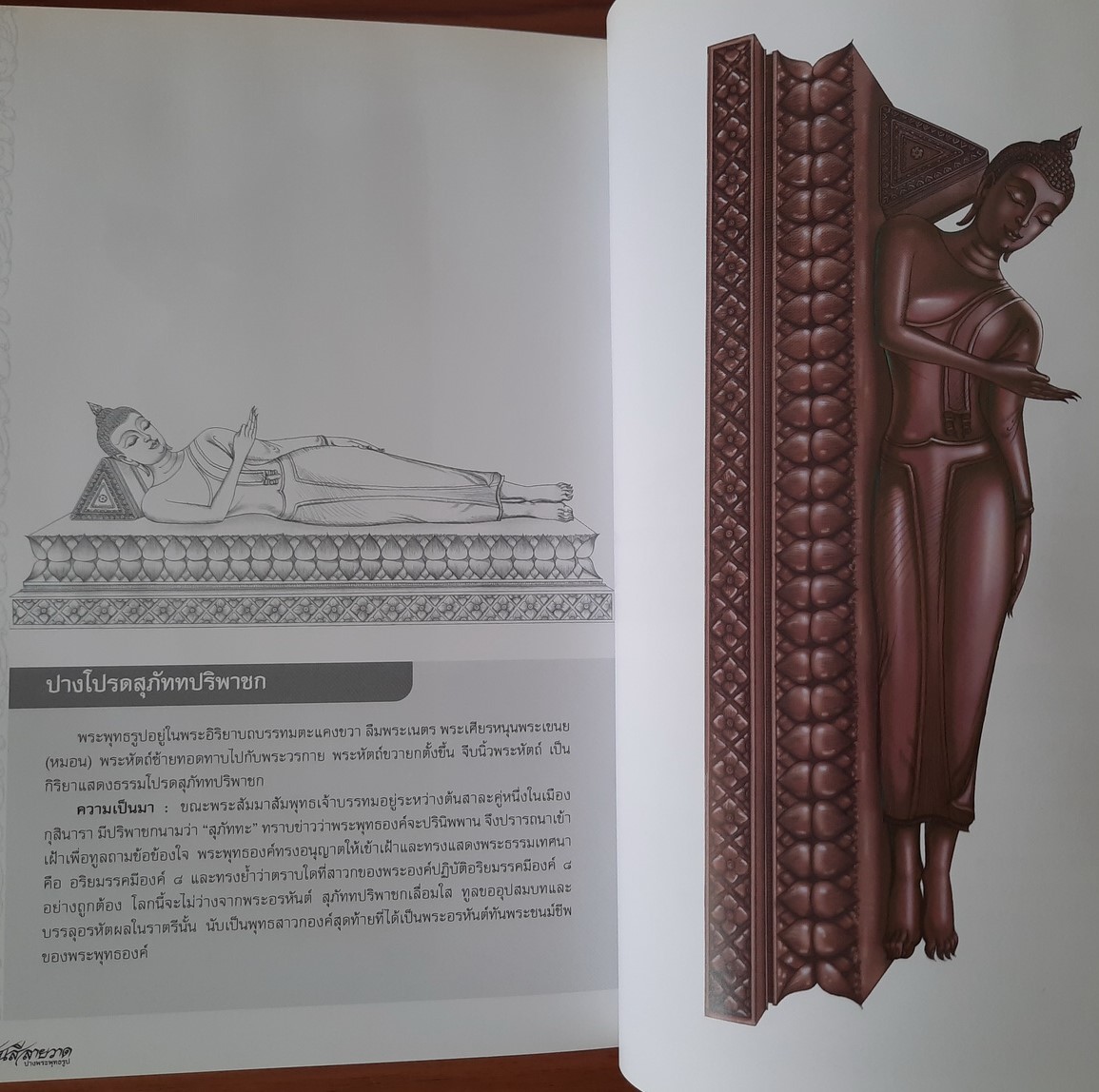 ปรากฏเป็นพระพุทธรูปปางต่างๆจนครบถ้วนทุกปาง และจากเส้นดินสอดำสู่ภาพสีที่มีเนื้อวัตถุหลากหลาย ไม่ว่าจะเป็นเนื้อดิน หินอ่อน โลหะ นาก แก้ว มรกต ทองคำ ล้วนถูกสร้างโดยฝีมือผู้วาด อันอาจมาจากสีแบบโบราณ หรือสีแห่งเทคโนโลยีคอมพิวเตอร์