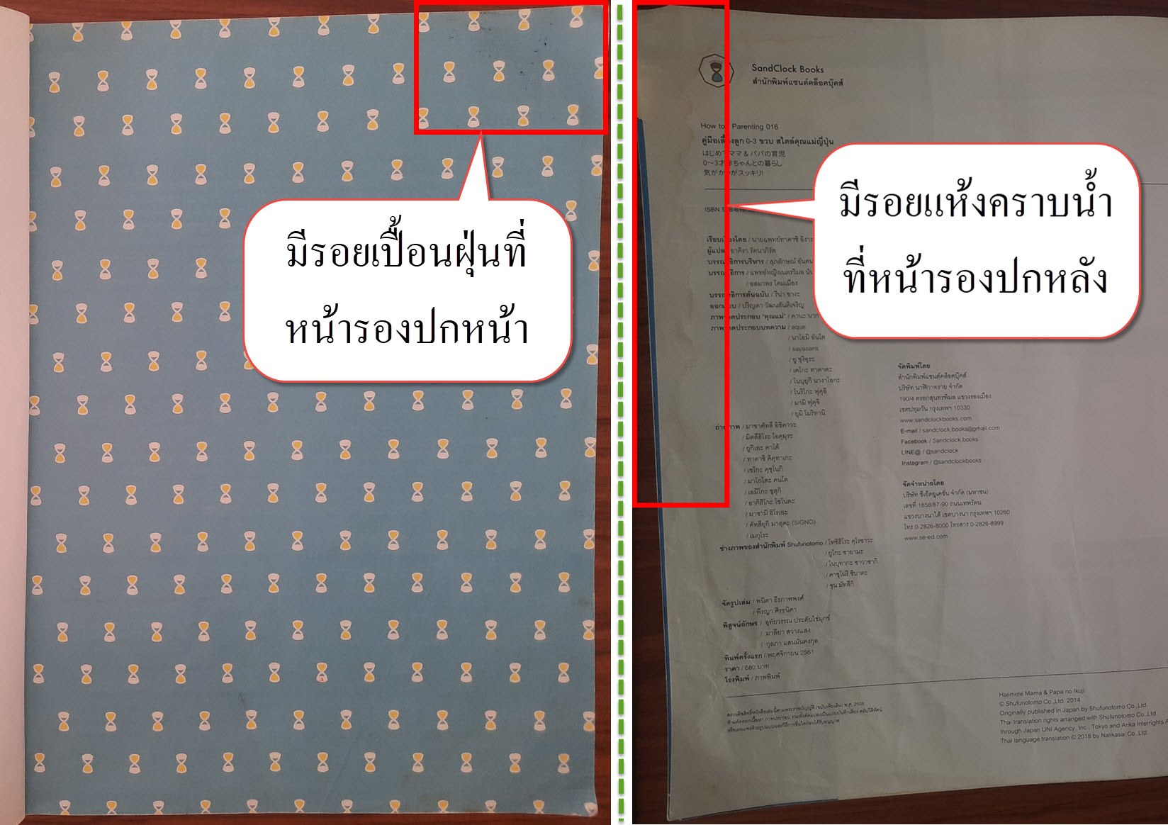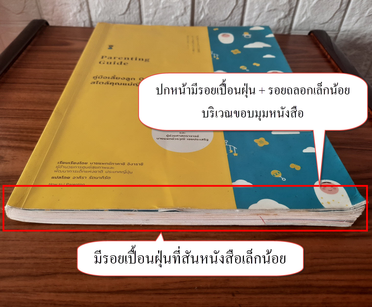 (2) ปกหน้า/ปกหลัง มีรอยเปื้อนฝุ่น + รอยถลอกเล็กน้อยบริเวณขอบมุมหนังสือ รายละเอียดตามภาพ